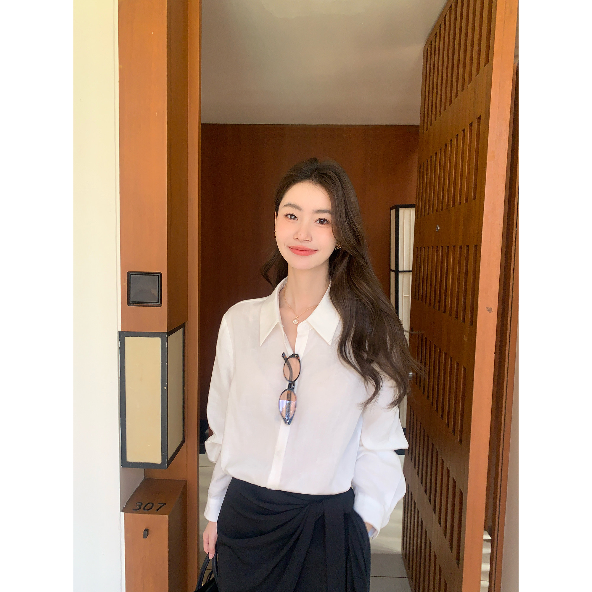 pusumede 不费力穿搭 莱赛尔亚麻长袖白衬衫女宽松阔腿休闲裤套装