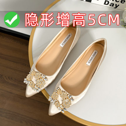 好穿不累脚软皮尖头内增高单鞋