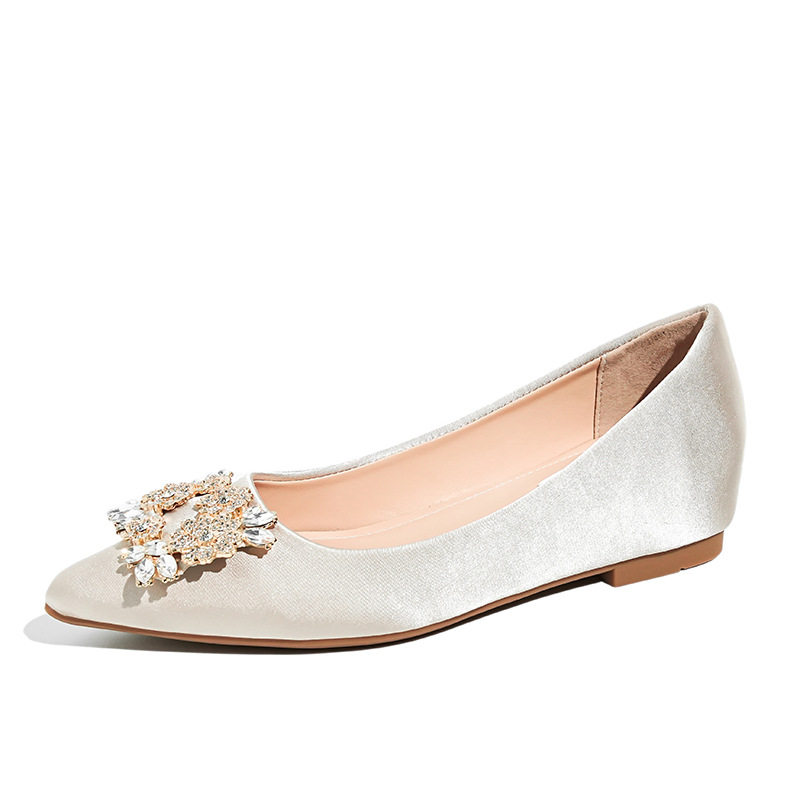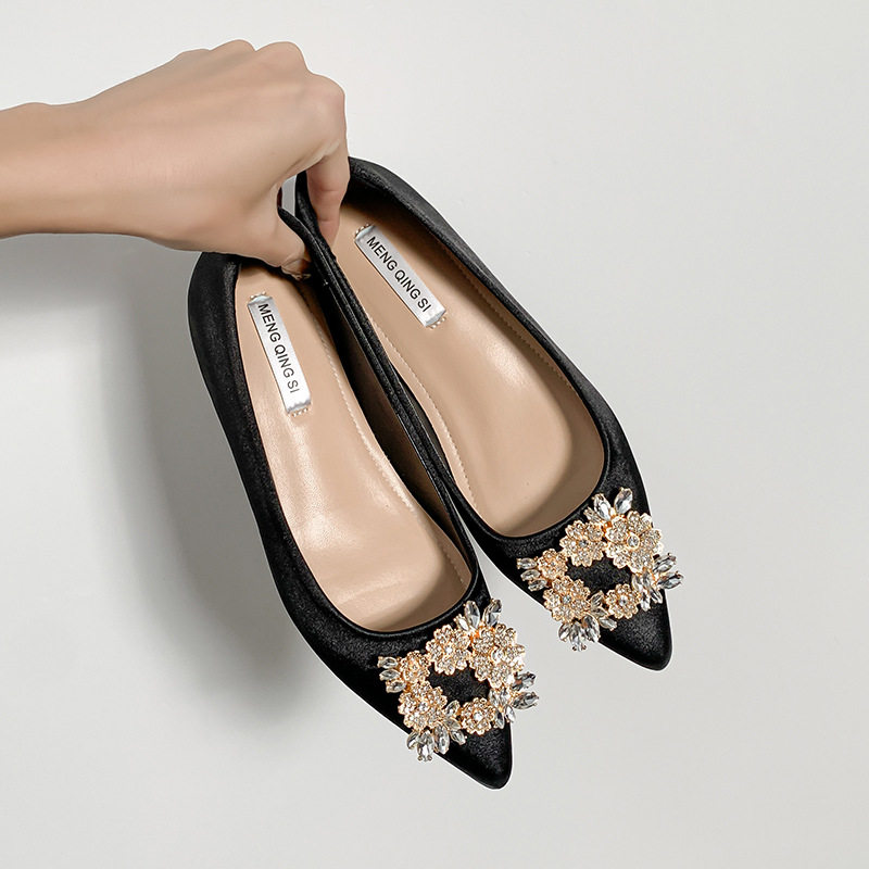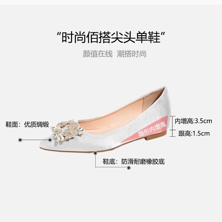 软皮尖头浅口小个子内增高单鞋33小码女鞋法式一脚蹬方钻平底鞋5