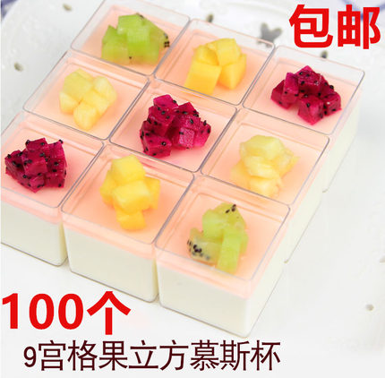 正方形果立方杯果冻慕斯杯布丁杯酸奶杯木糠杯九宫格盒子 100ml