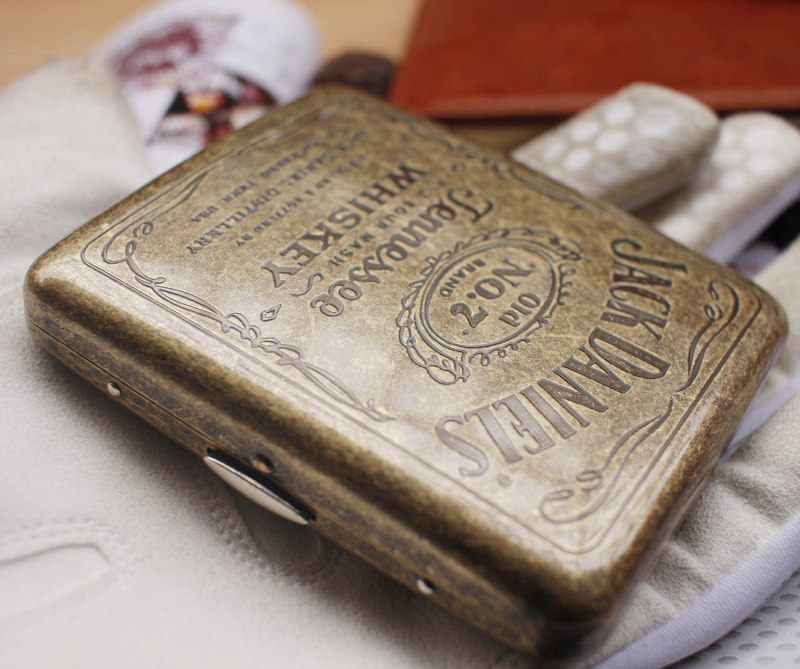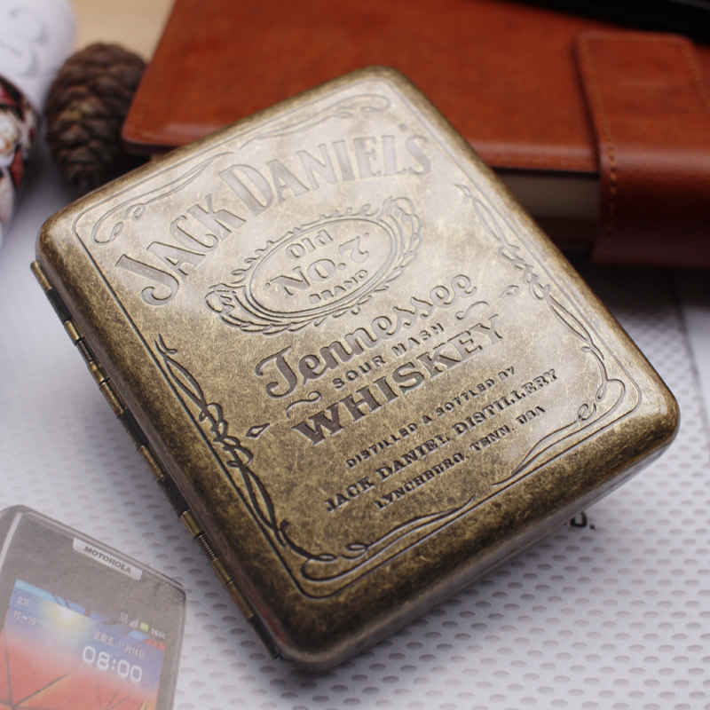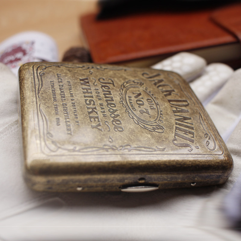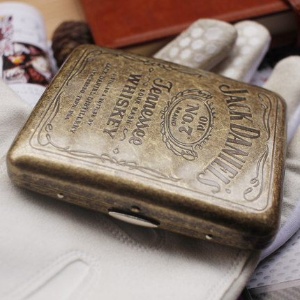 高档新款便携翻盖20支装男士定制烟盒青铜拉丝杰克丹尼超薄便携款