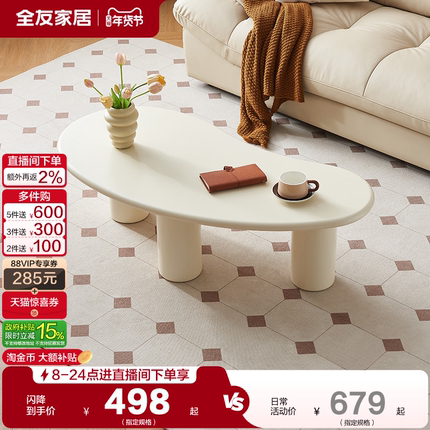 全友家居2025新款奶油网红风客厅家用创意茶几小户型异形茶桌茶台