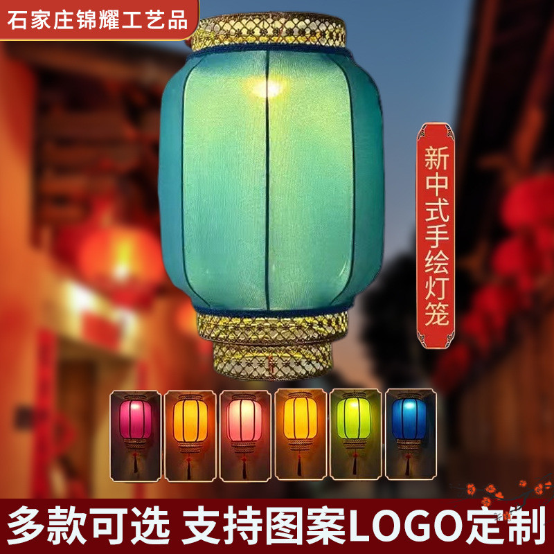 中式防古布艺灯笼装饰吊灯景区户外街道挂饰广告印字长款冬瓜灯笼