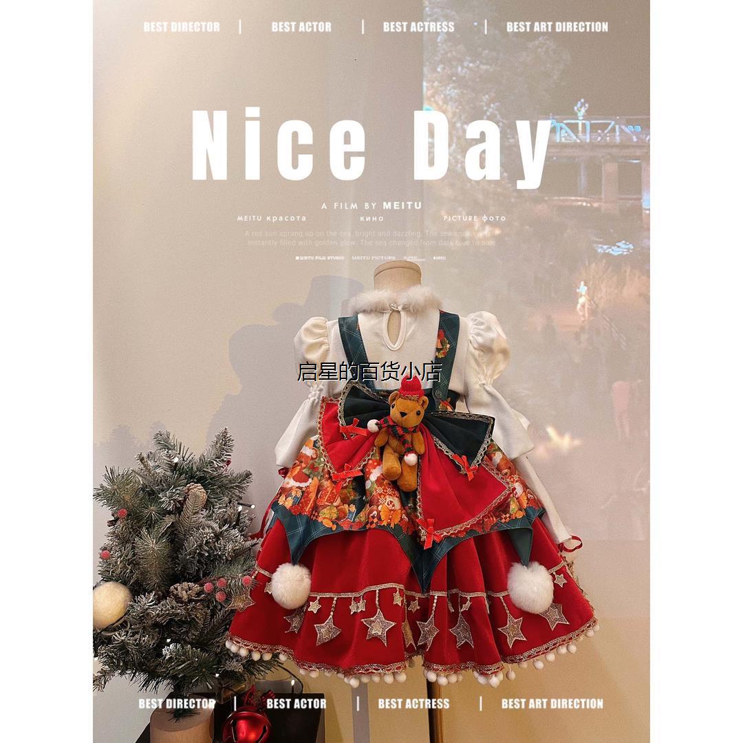 2024新款女童连衣裙秋冬圣诞儿童洛丽塔公主裙洋气女宝礼服蓬蓬裙