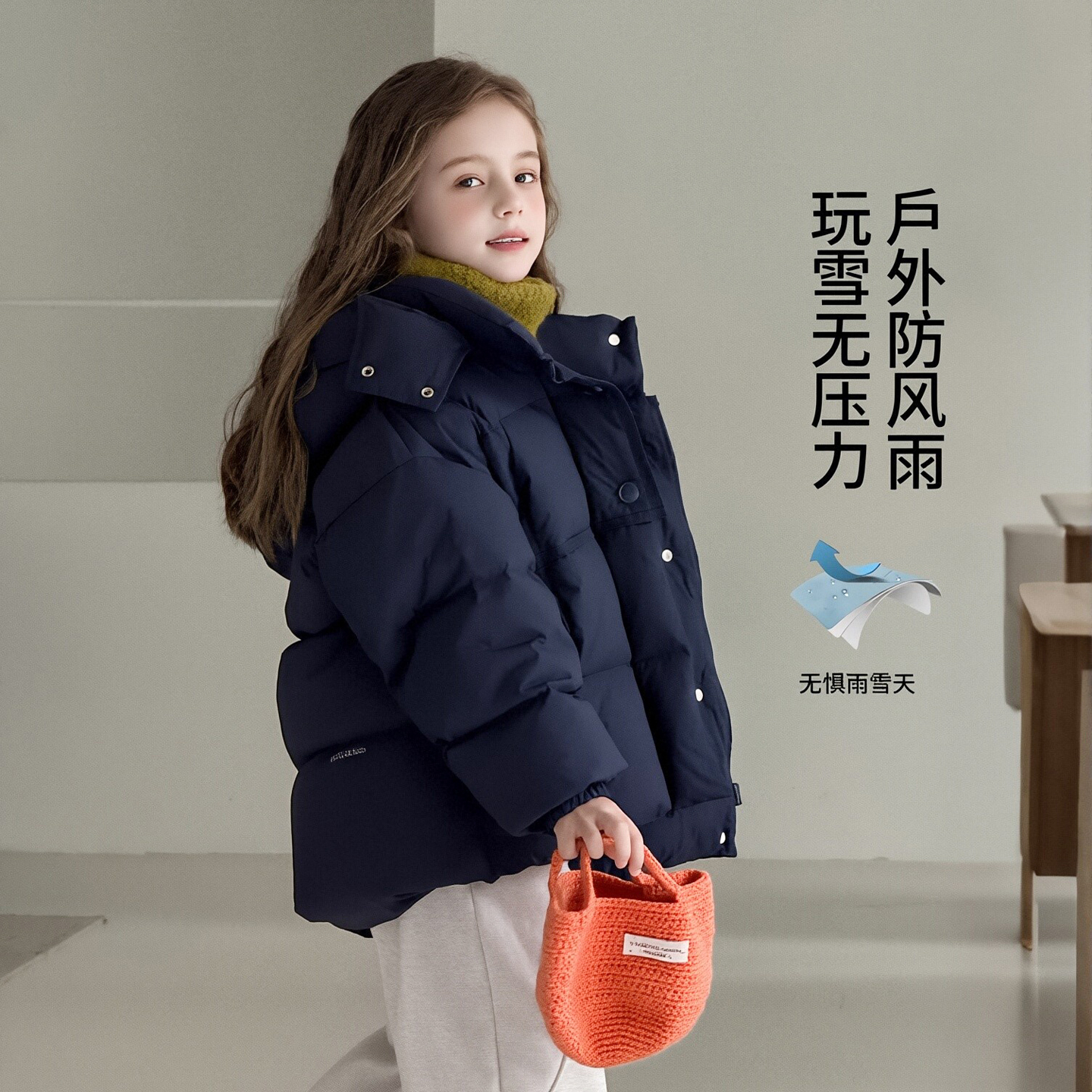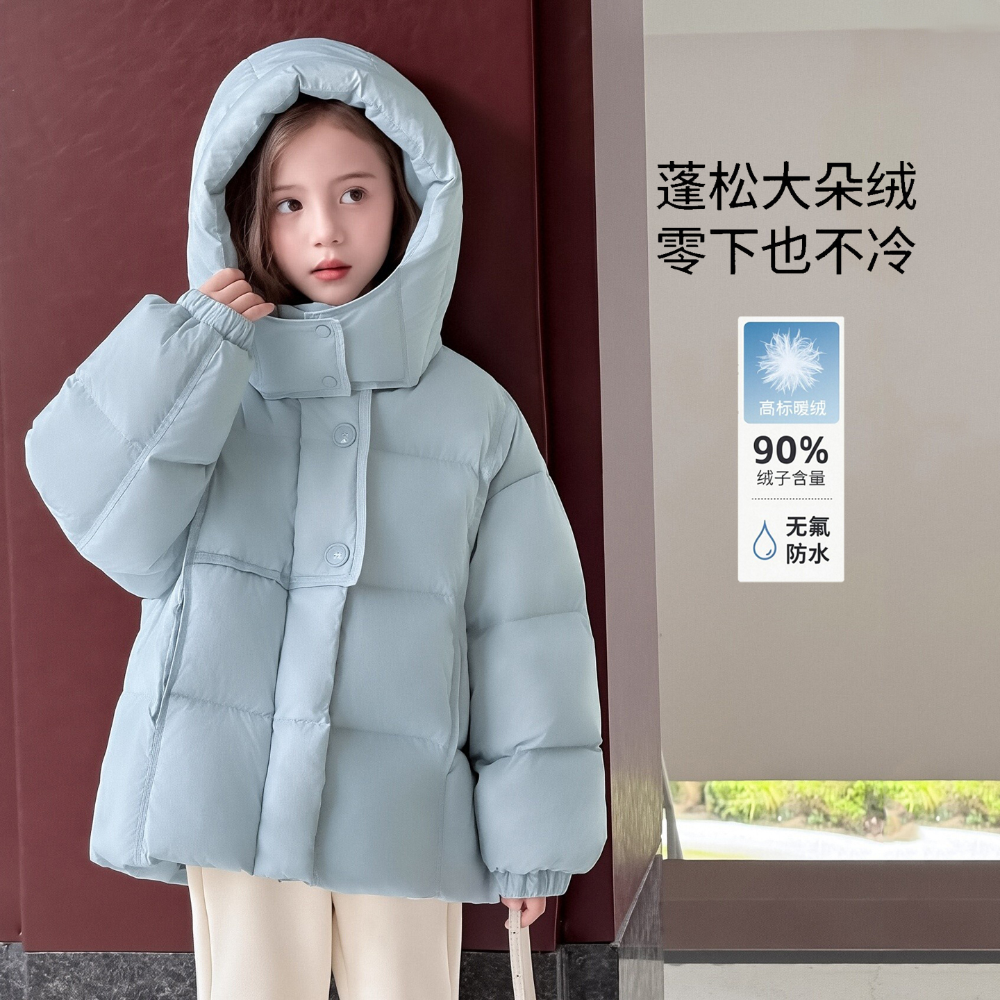 女童羽绒服2025新款儿童冬季洋气加厚面包服保暖90白鸭绒防水外套