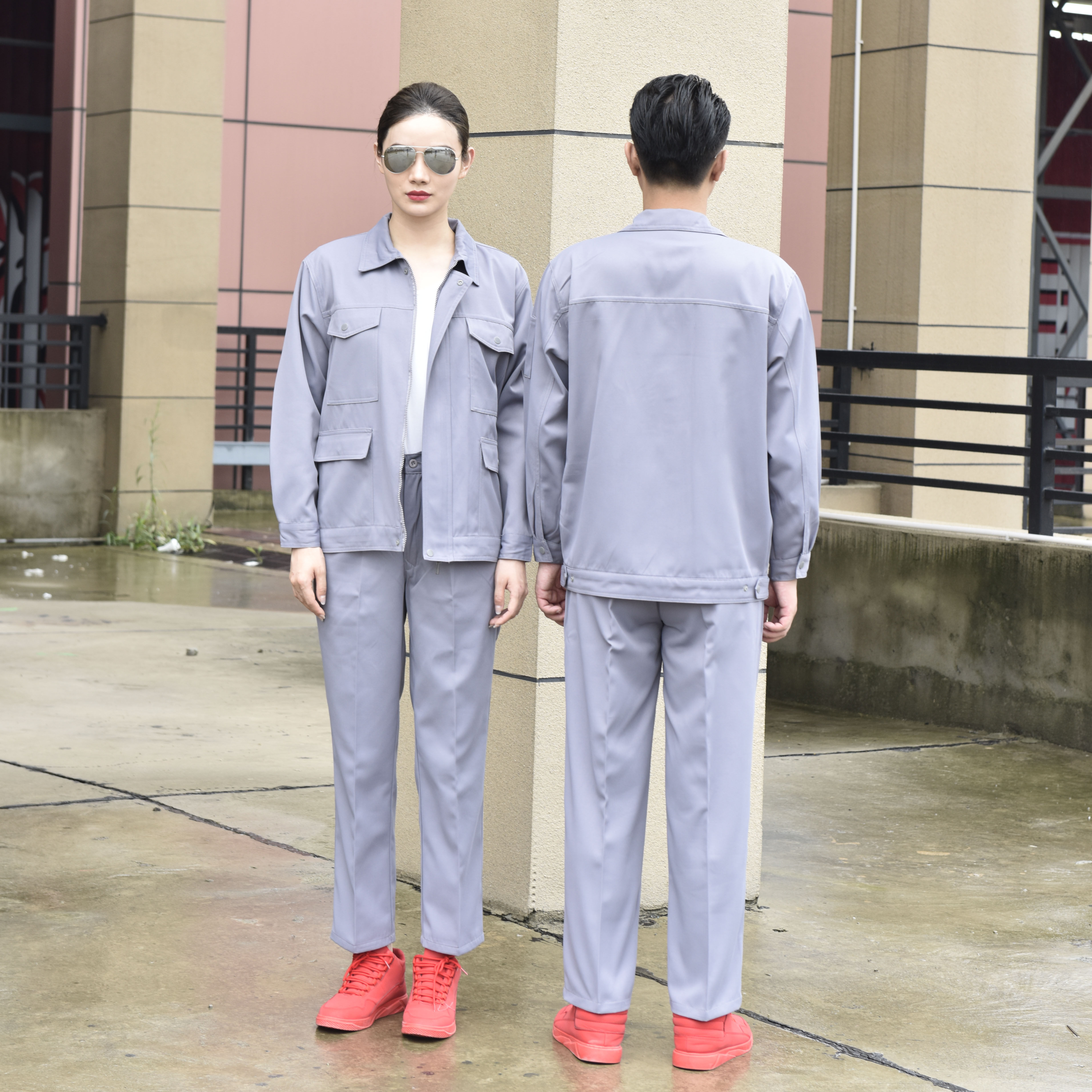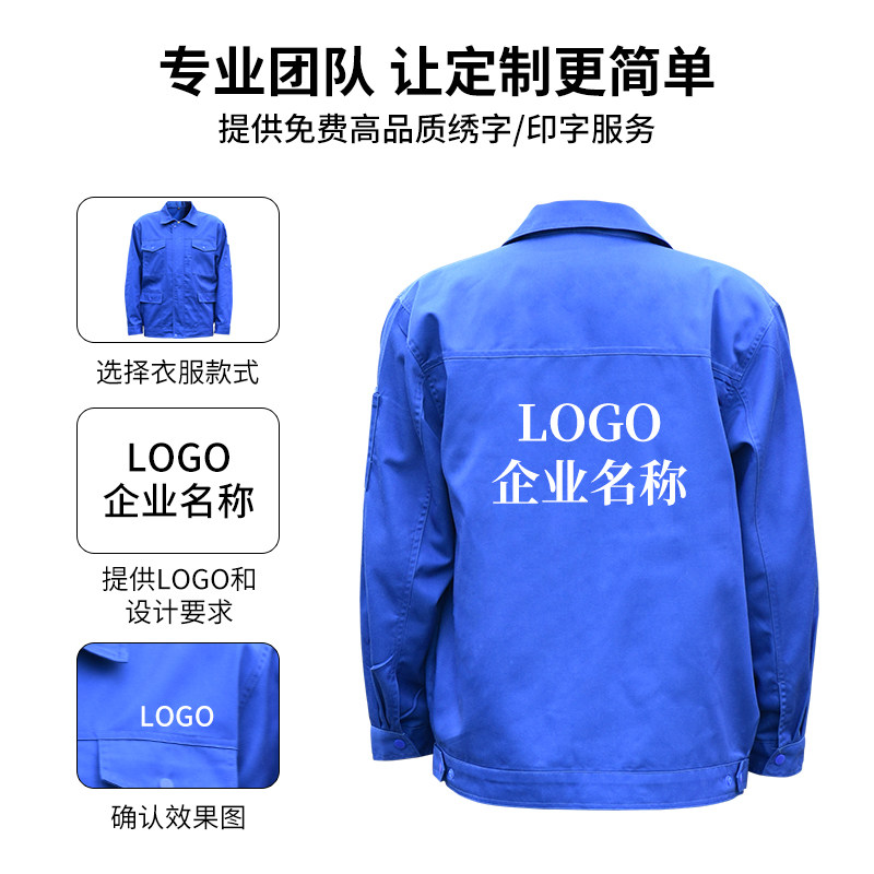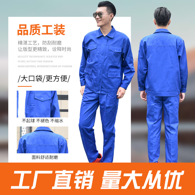 大口袋工作服套装男工厂汽修耐磨长袖工装上衣蓝色春秋劳保服定制