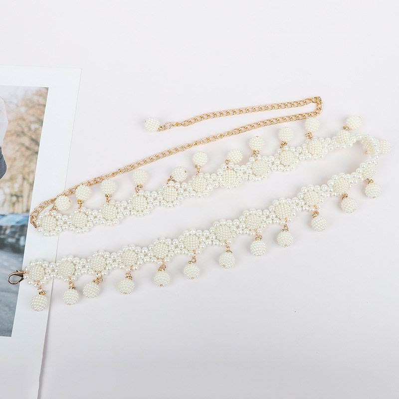 新款珍珠时尚腰链l韩版甜美肚皮舞裙子流苏百搭女士连衣裙装饰腰