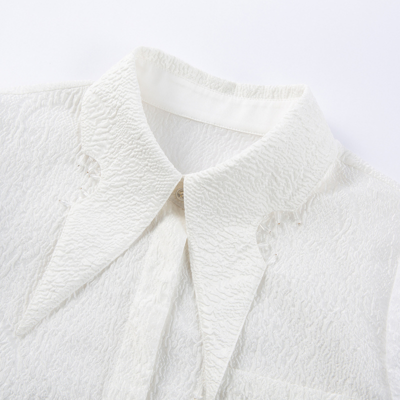 【商场同款】荷比俪夏女蕾丝设计感修身通勤短袖衬衫HMC23630208