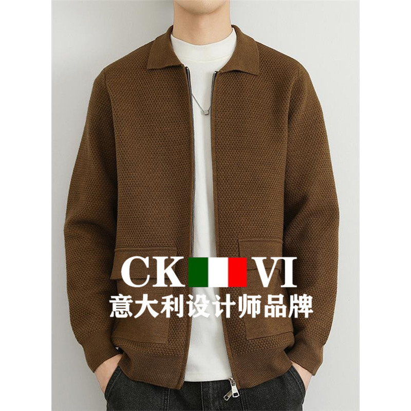 官方正品CKvi秋季款针织羊绒外套男士翻领高级感加厚羊毛开衫毛衣