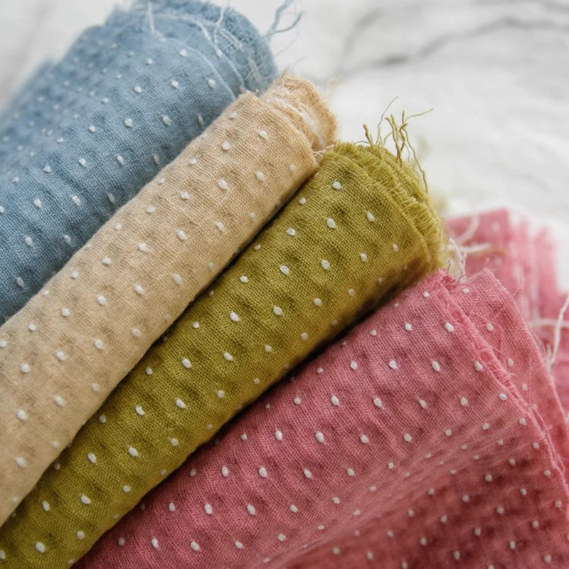 可爱雪籽刺绣点点提花棉布料 复古童装连衣裙衬衫手工diy服装面料