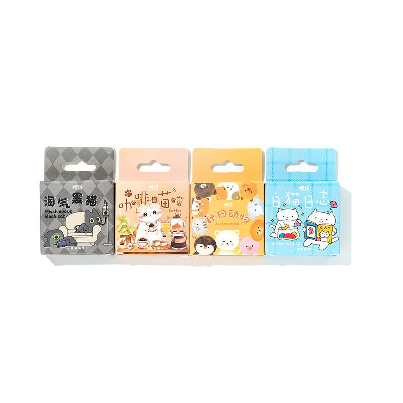 M|糖诗盒装贴纸 萌宠淘气黑猫可爱白猫手账铜版纸封口贴画46枚入