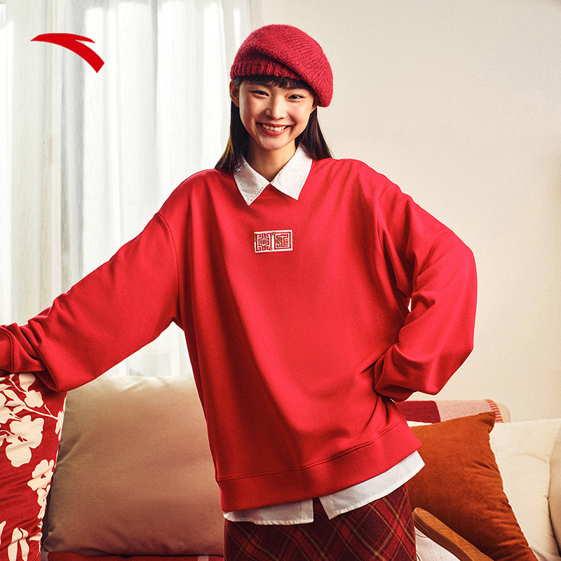 安踏好事发生丨情侣新年款套头卫衣男女同款冬季本命年红色长袖