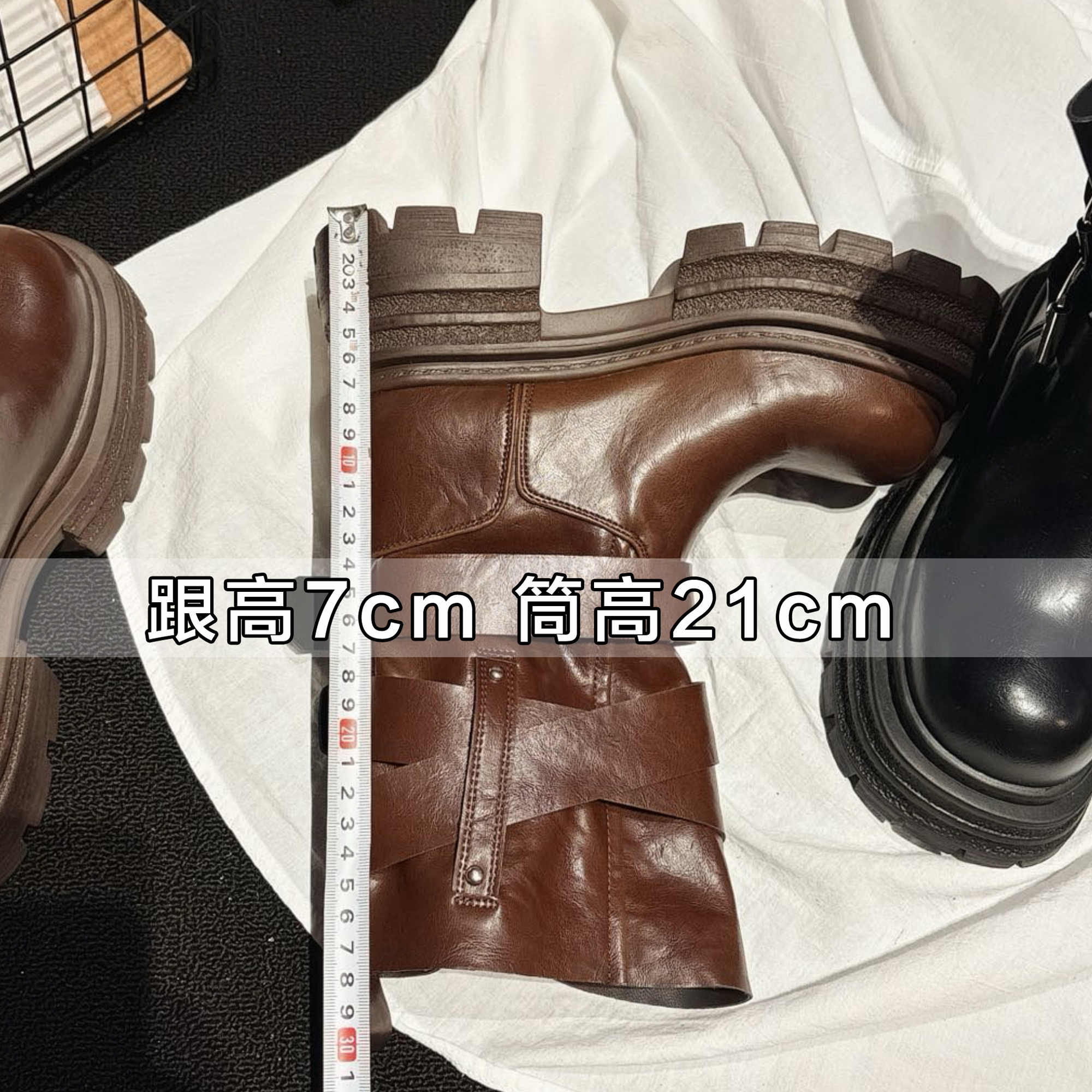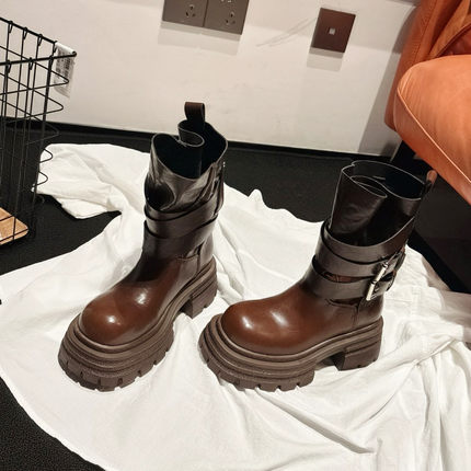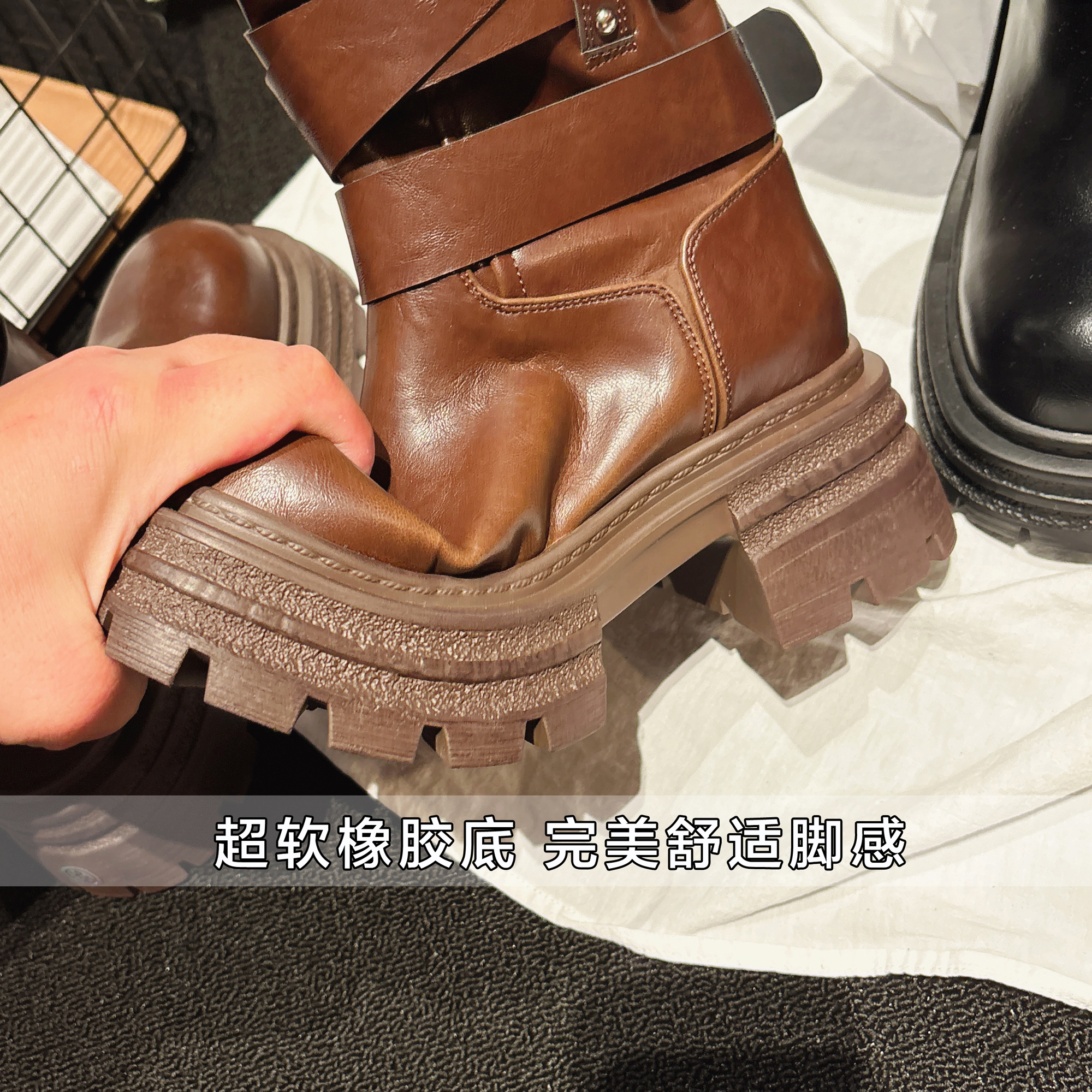 韩国单~巨软皮带扣厚底增高马丁靴女2025秋新款短靴ins短筒骑士靴