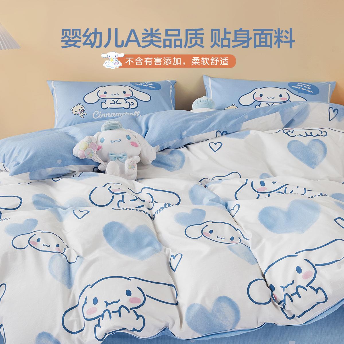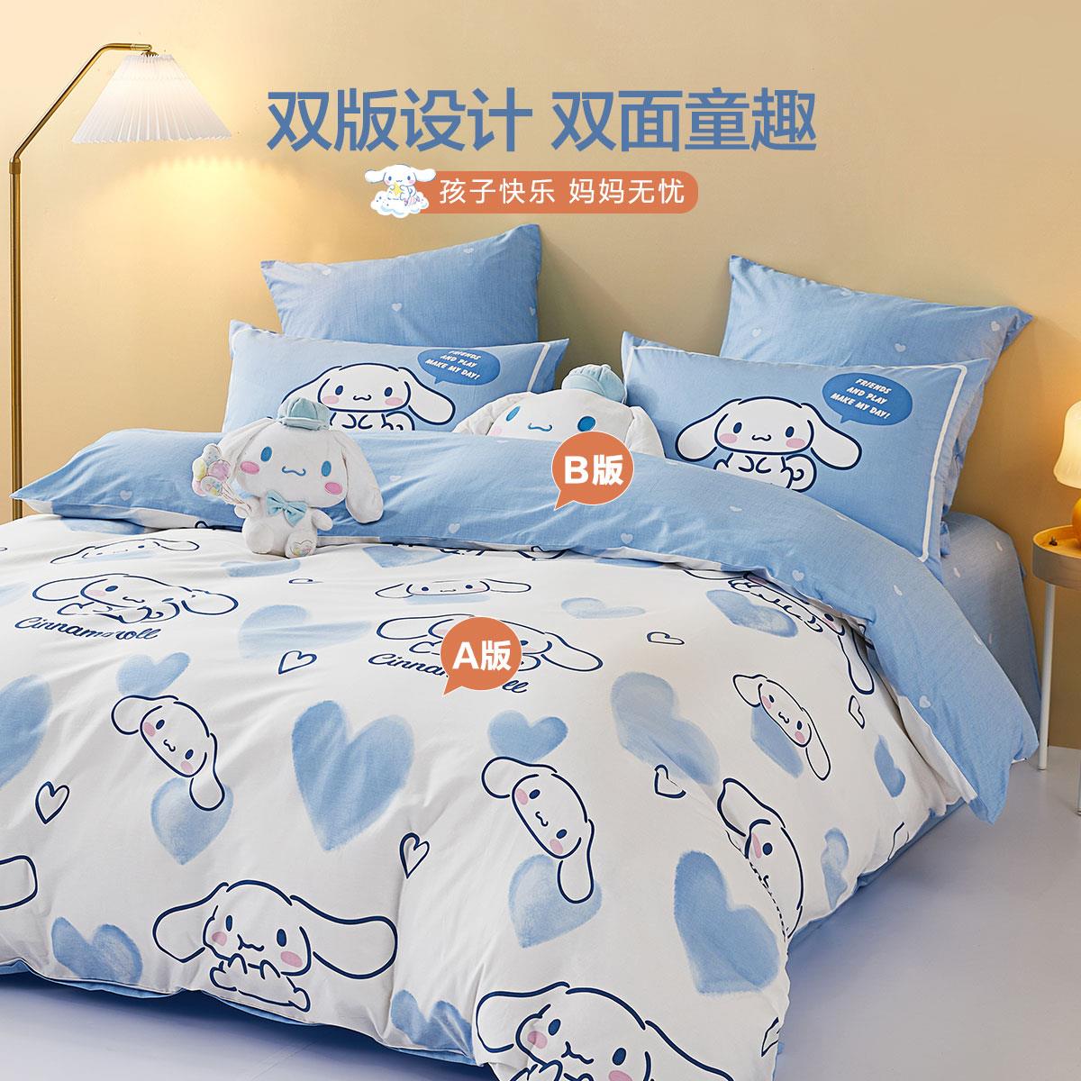 水星儿童纯棉四件套抗菌A类卡通大耳狗儿女孩床品三件套床单被套