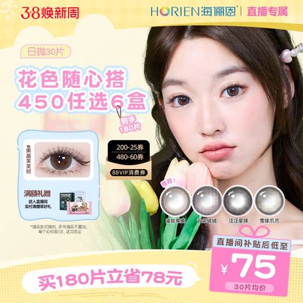 【直播专享】任选6盒海俪恩美瞳日抛30片隐形眼镜