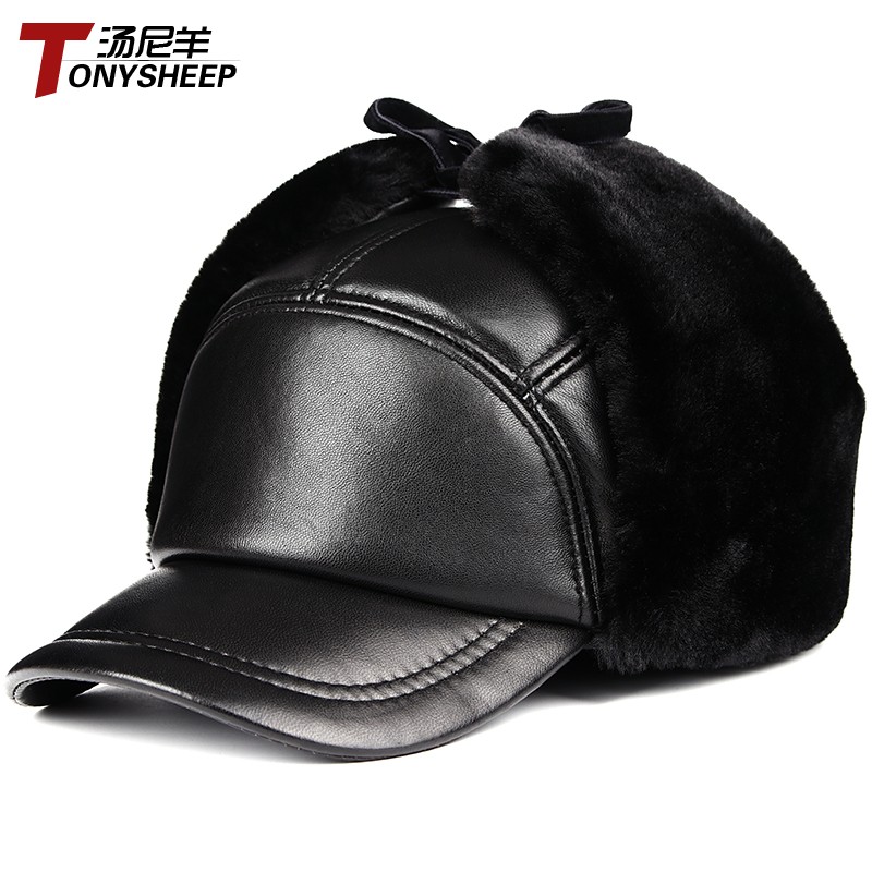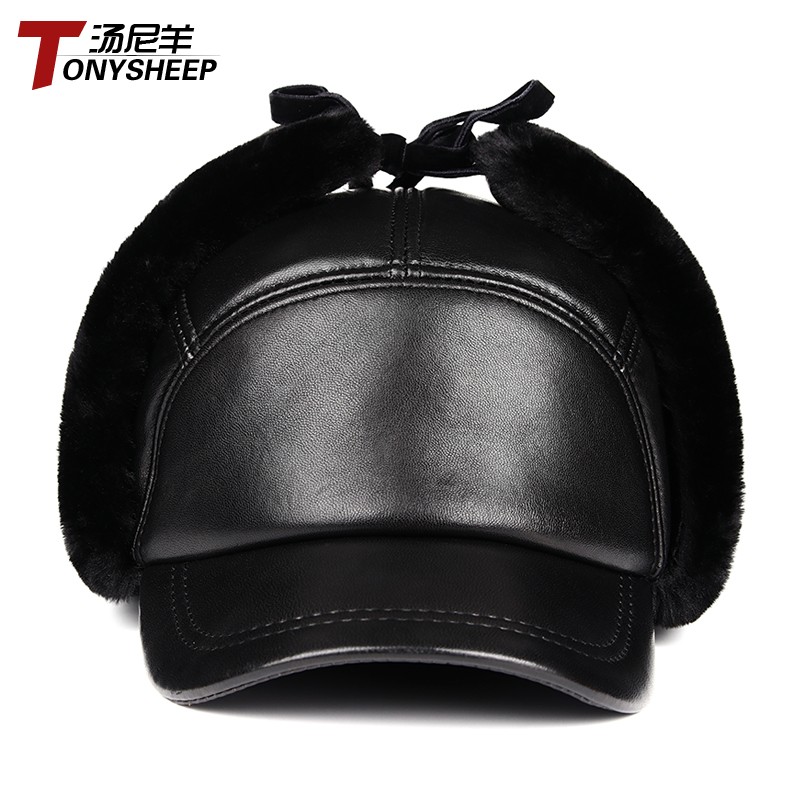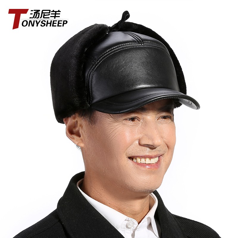 中老年真皮帽子男冬季老人爷爷护耳E保暖真皮帽子冬天加厚加绒棉
