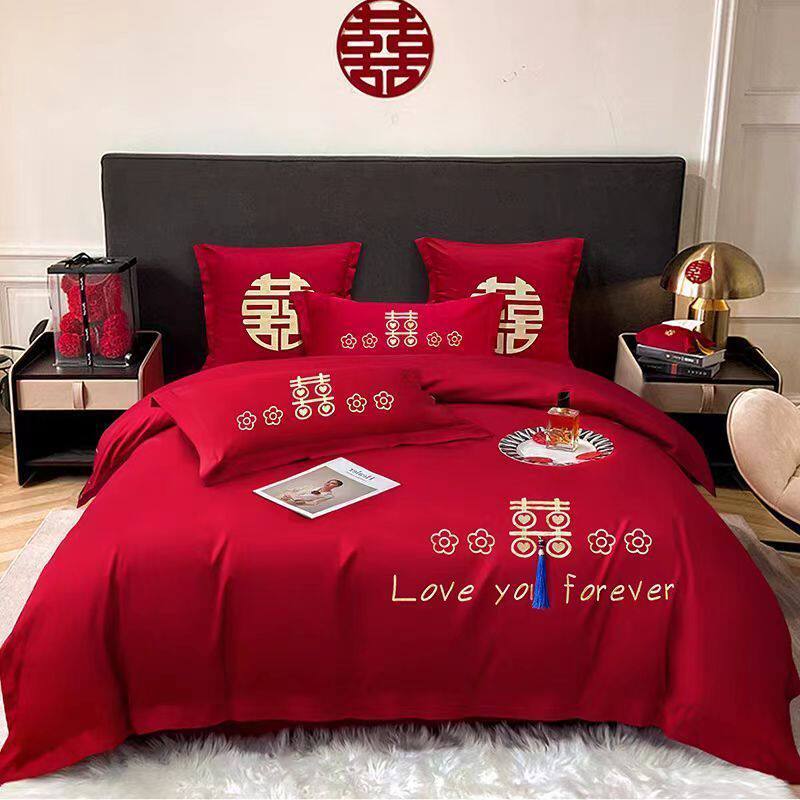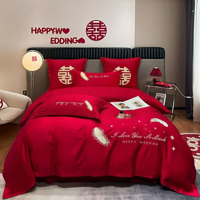 婚庆床品套件四件套刺绣婚嫁床单床笠亲肤柔软不起球结婚床上用品