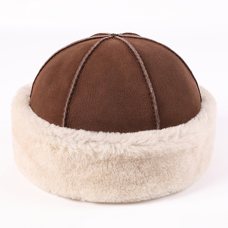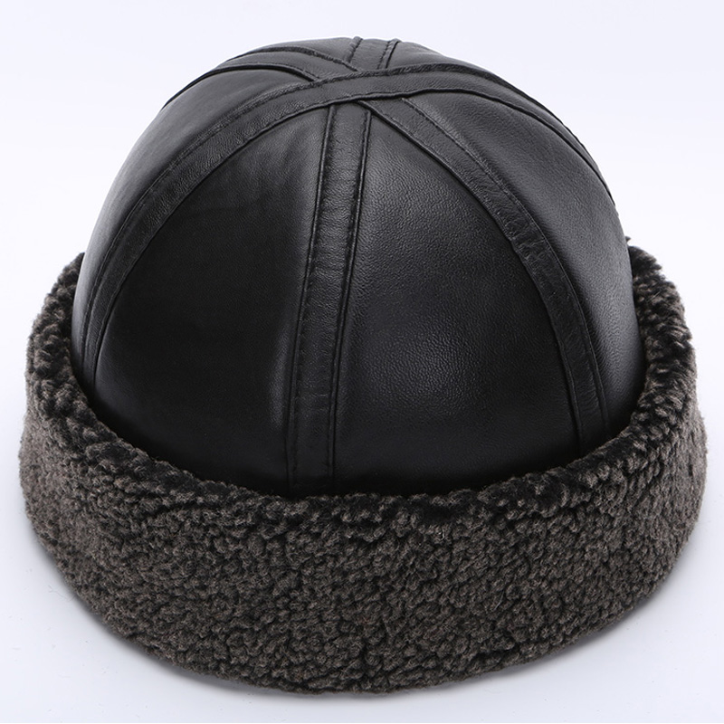 冬季中老年真皮帽子男老人羊皮加厚地主爷爷老头保暖护耳西瓜棉帽