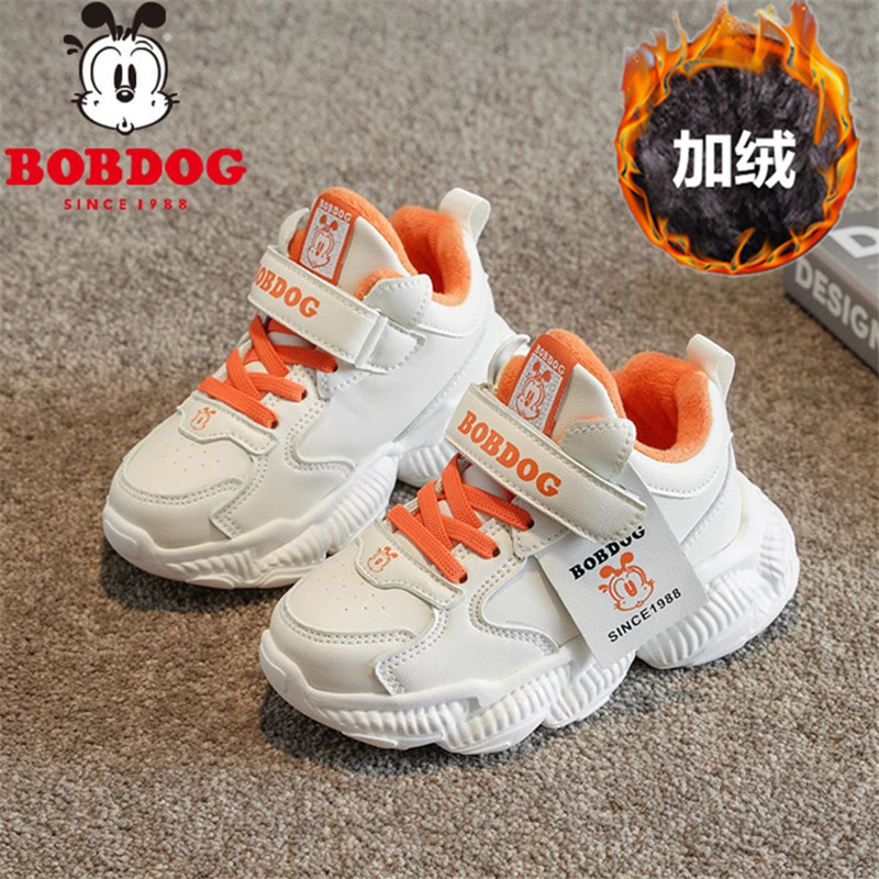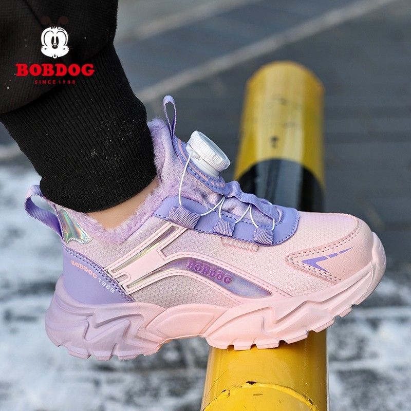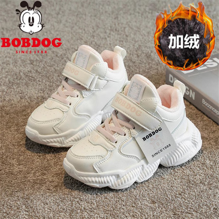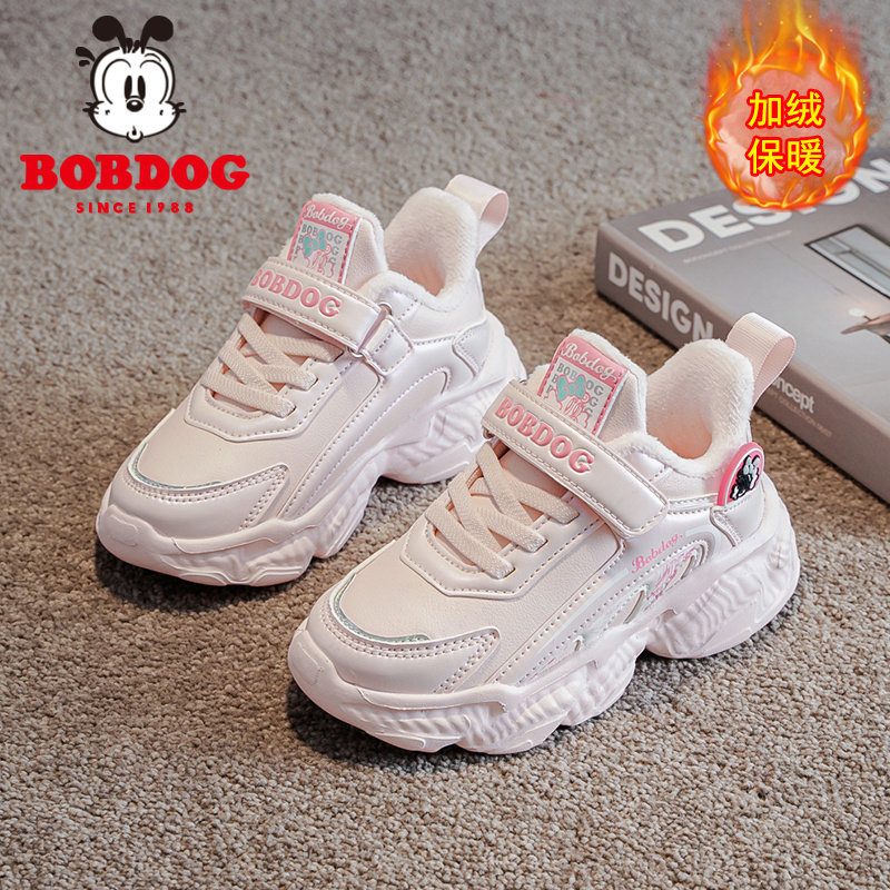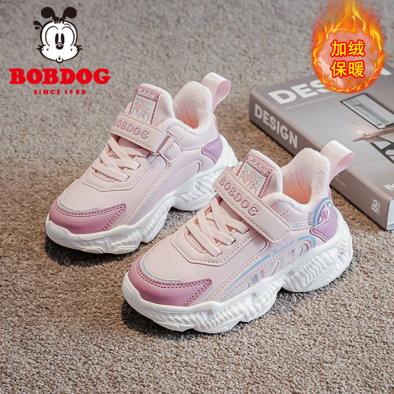 巴布豆女童鞋子冬季皮面加绒加厚保暖女孩冬鞋跑步棉鞋儿童运动鞋