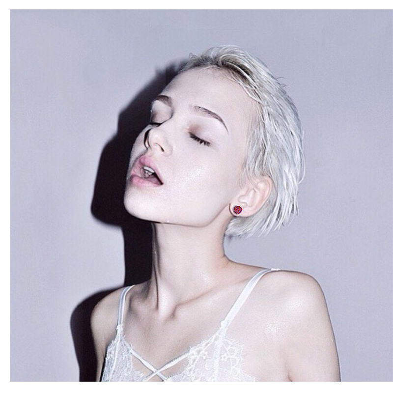 MC美国进口天然晶簇耳钉紫红色925纯银防过敏男女时尚简约气质潮