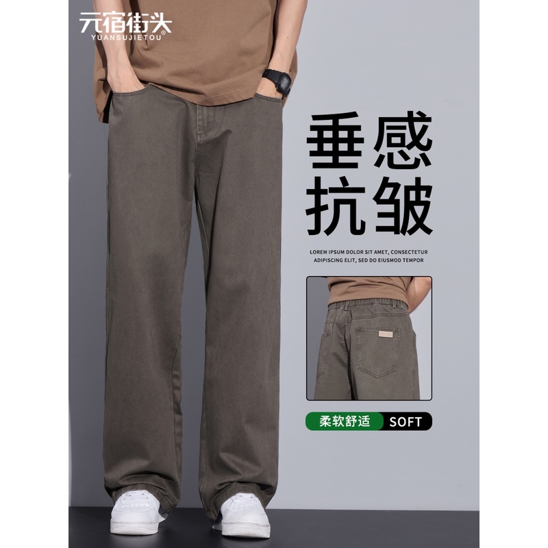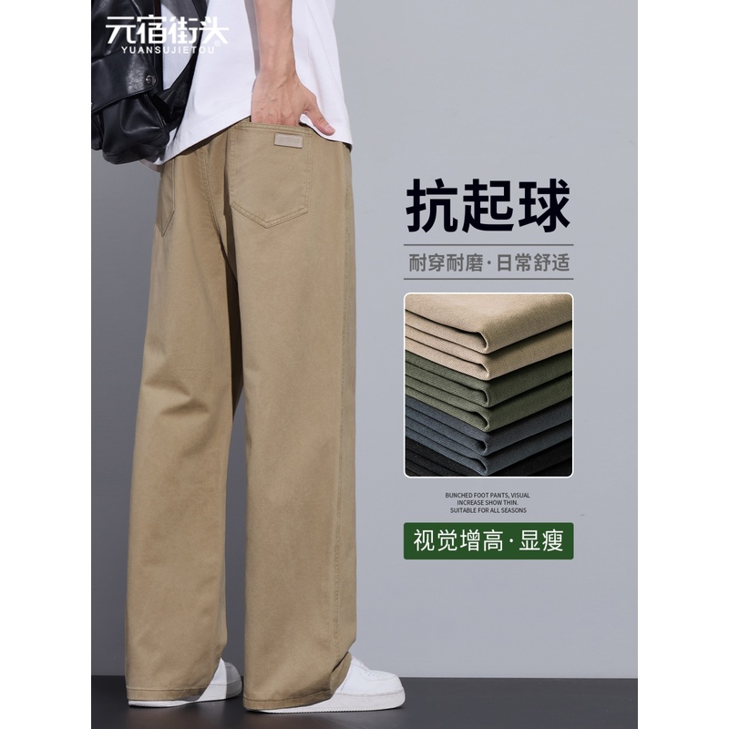 卡其色纯棉休闲裤男秋季款2025新款宽松直筒裤男款裤子男士工装裤