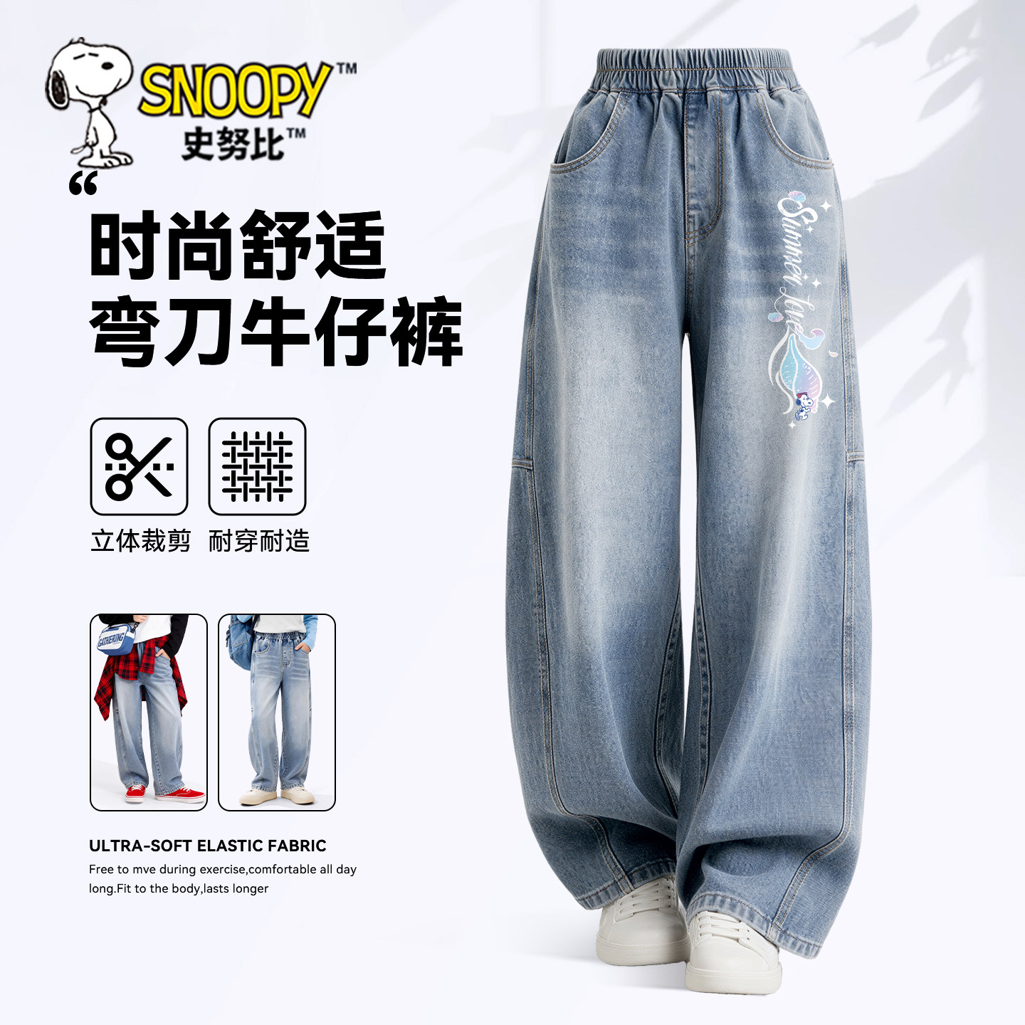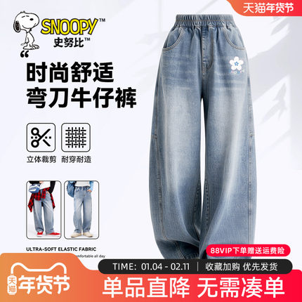 史努比儿童裤子女孩弯刀裤2026新款春大童阔腿裤春秋款女童牛仔裤