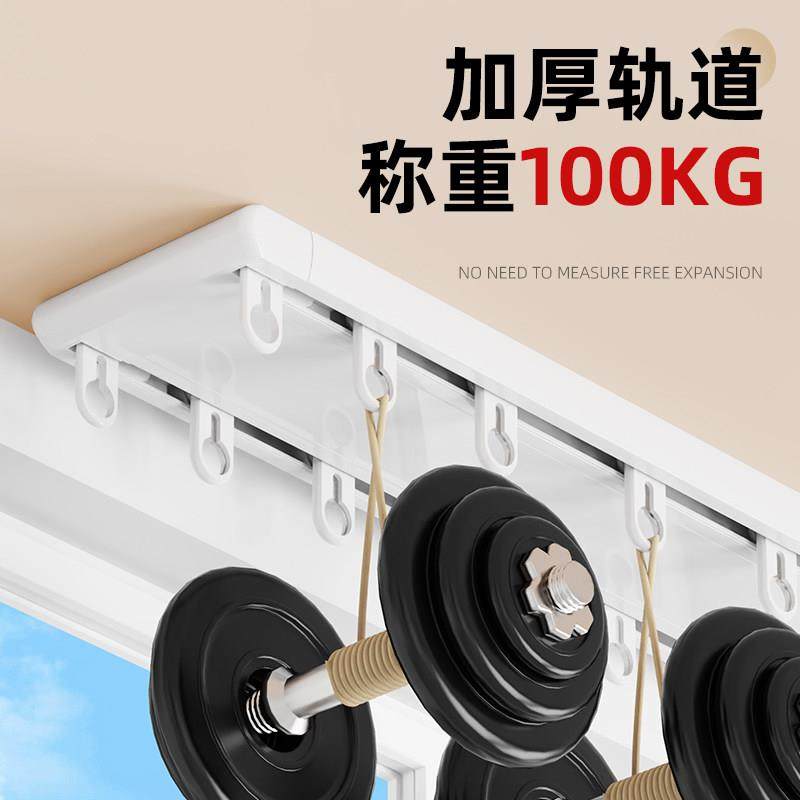 静音轨道双轨滑轨双排阳台滑道窗帘杆窗帘盒一体式双层铝合金轨道