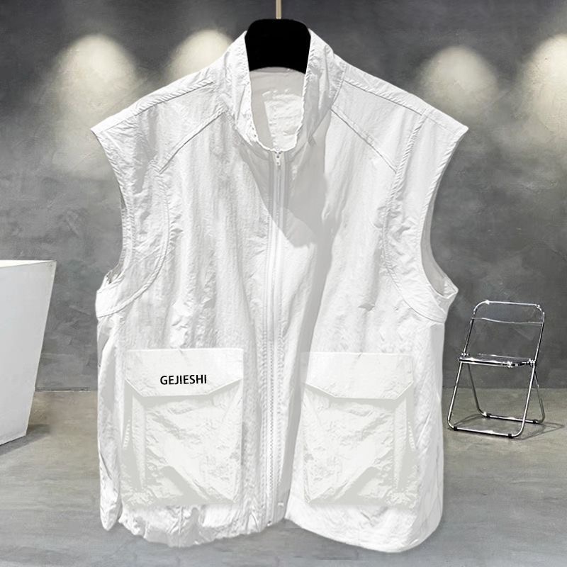 冰丝速干 ins潮牌马甲男夏季户外工装大口袋坎肩背心宽松休闲马夹