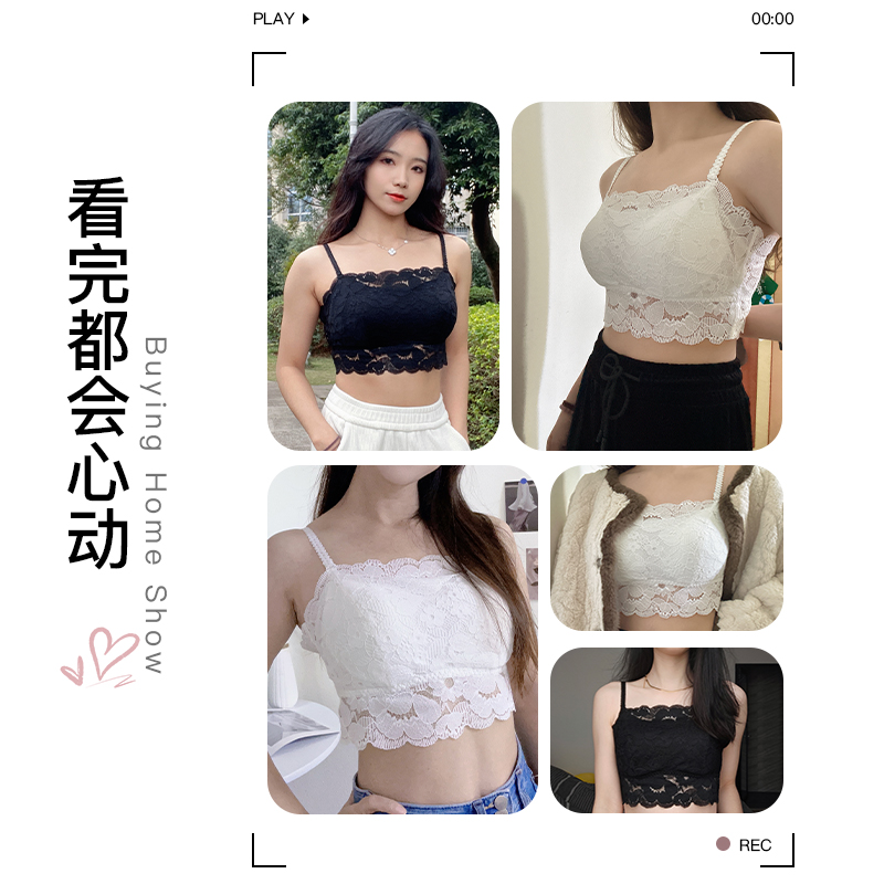 抹胸内衣女美背薄款一体吊带防走光内搭蕾丝小胸聚拢背心式文胸罩