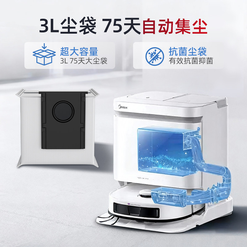 适用于美的扫地机v16珍珠版配件尘袋滤芯胶刷抹布边刷清洁液耗材