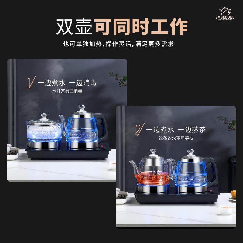 开22X6全自动两边上泡水电热水壶孔茶壶烧水套装DB-302 大理石茶