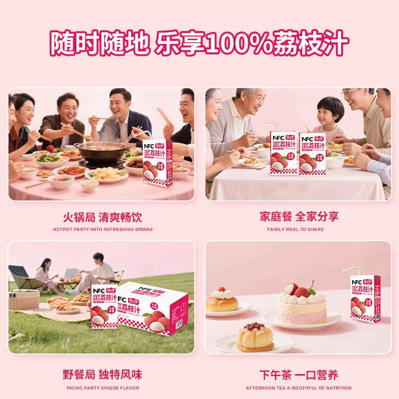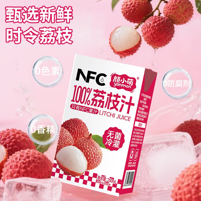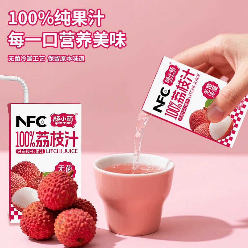 颜小萌NFC同款荔枝汁25010盒装100%果汁无添加饮品料整箱国货鲜榨
