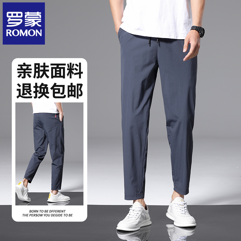 Romon/罗蒙冰丝九分休闲裤男士夏季薄款弹力垂感舒适直筒西裤N3Z