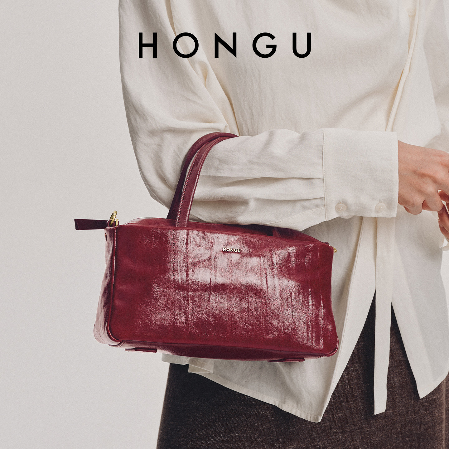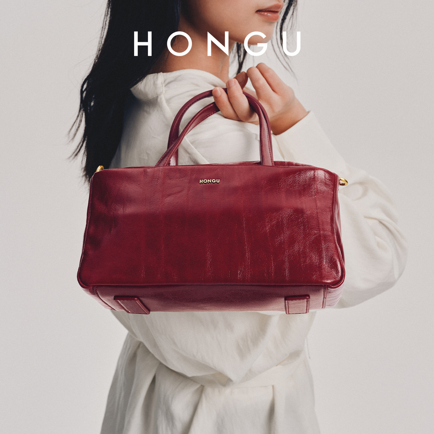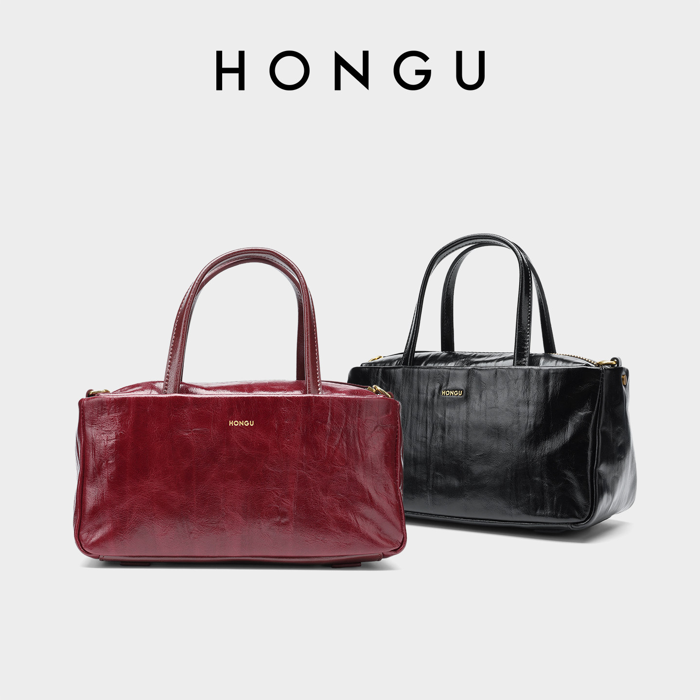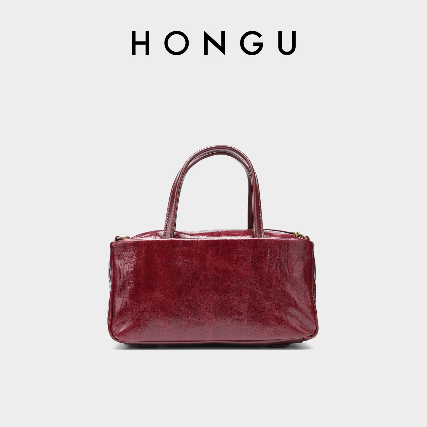 红谷包包女2025新款真皮单肩手提包通勤手拎托特包油蜡牛皮女士包