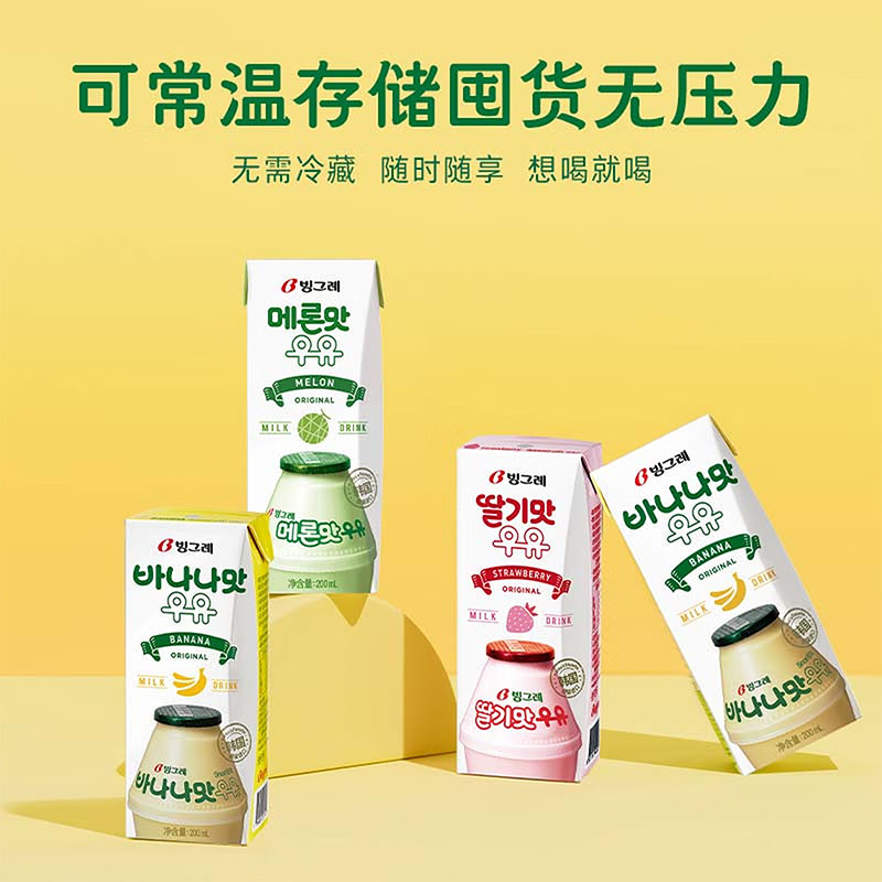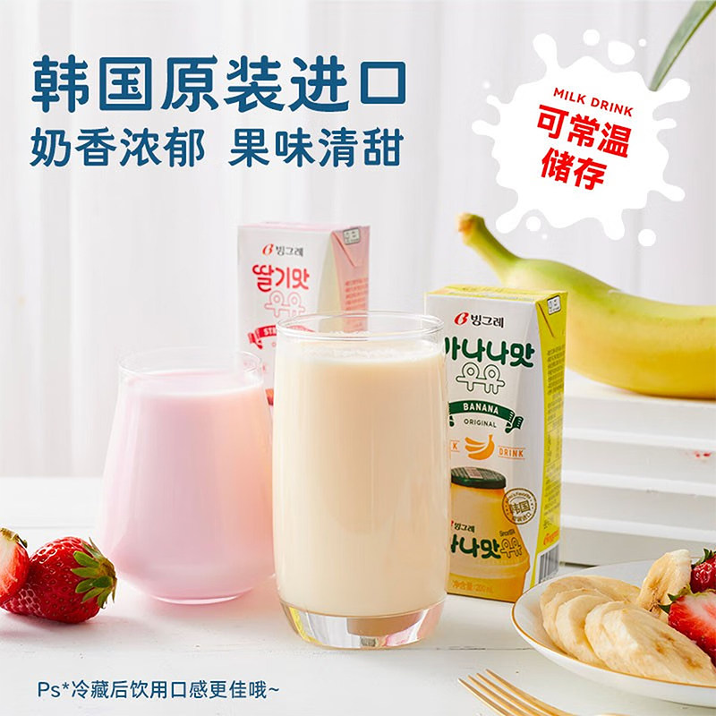 韩国进口宾格瑞果汁牛奶草莓香蕉哈密瓜味儿童含乳饮料早餐奶饮品