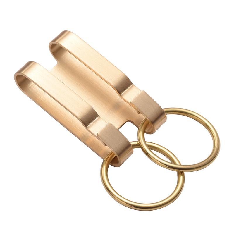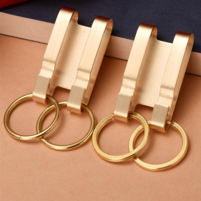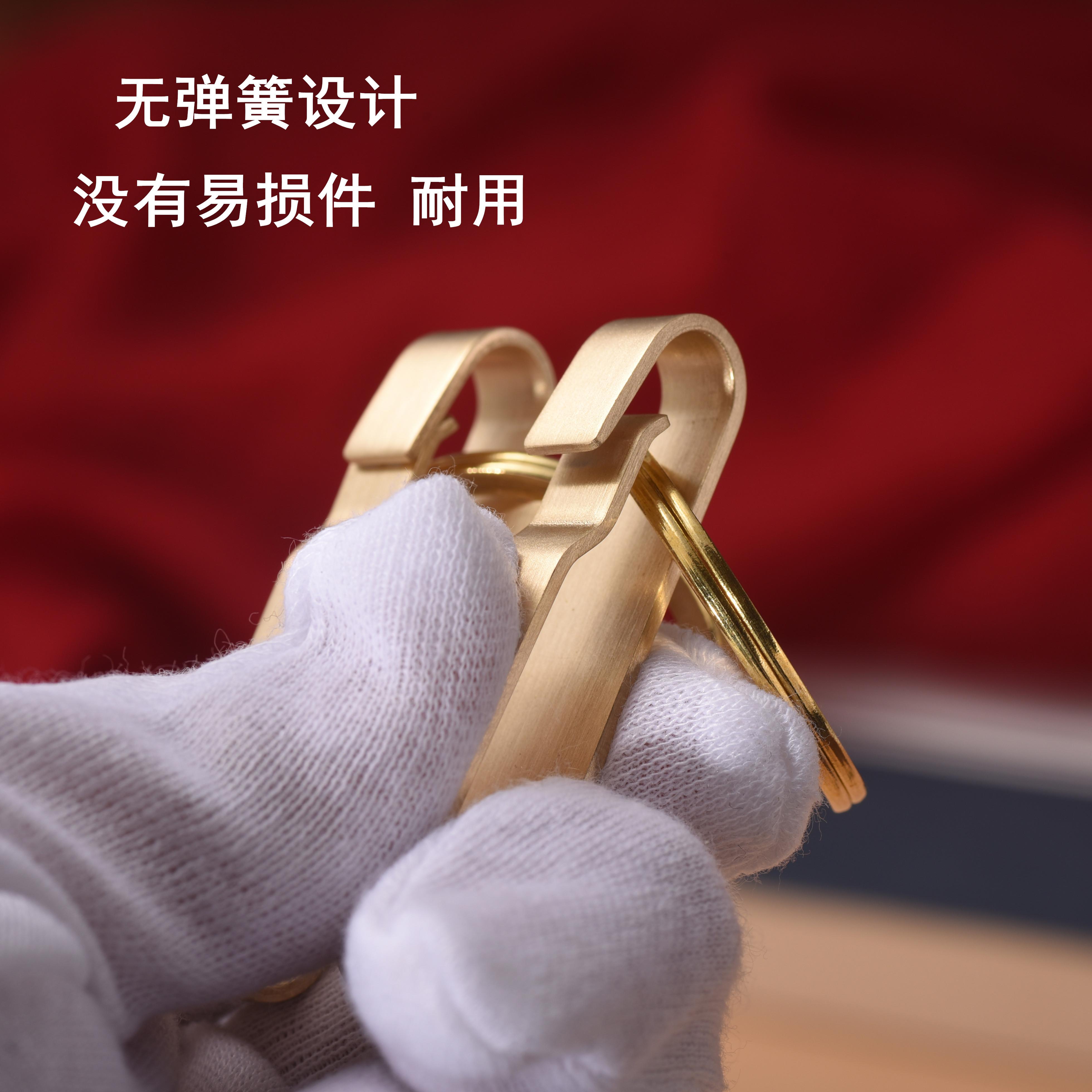 手工不锈钢纯黄铜双排穿腰带钥匙扣男生复古穿皮带金属腰挂防丢