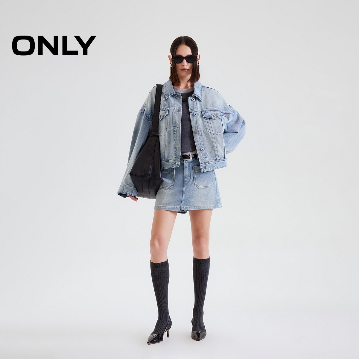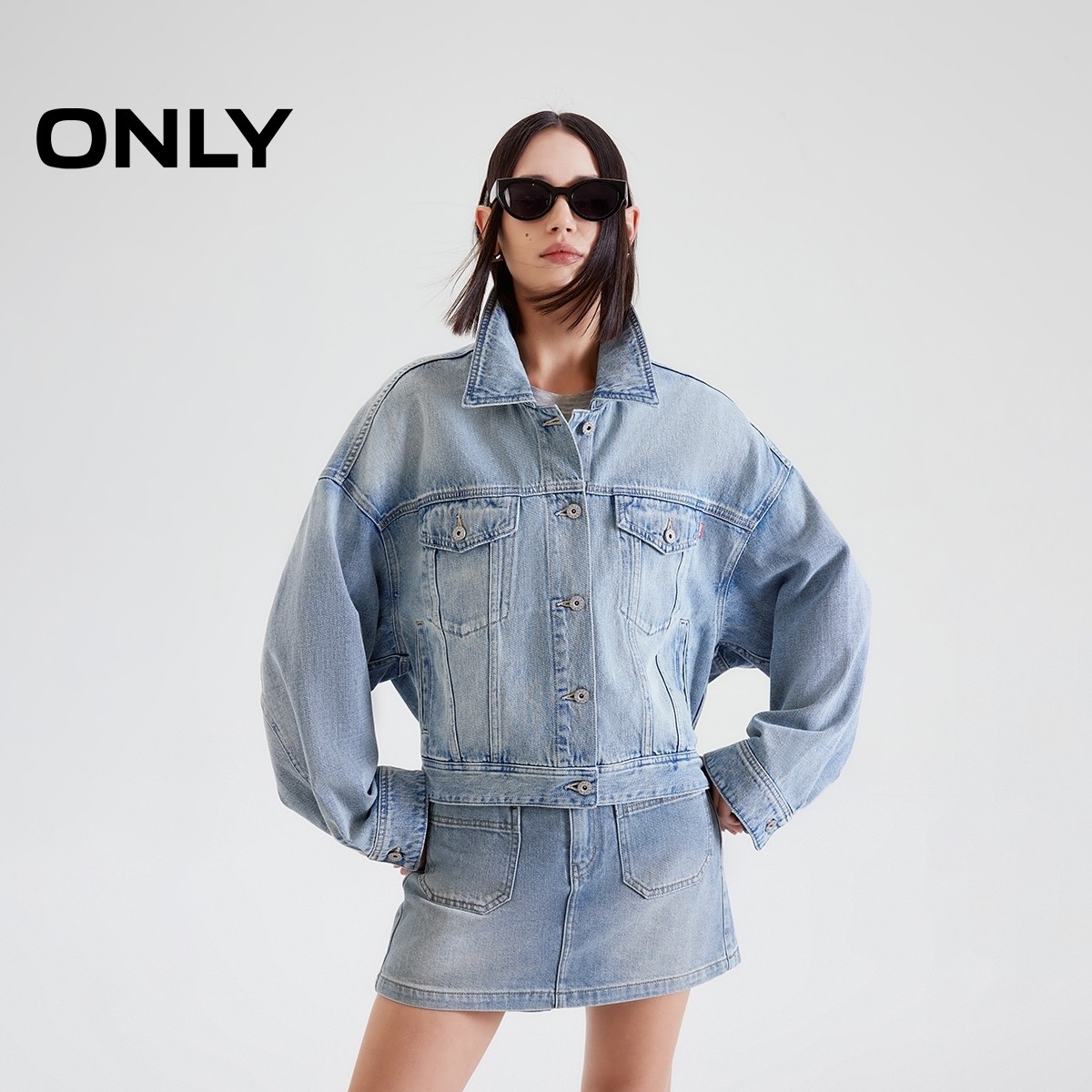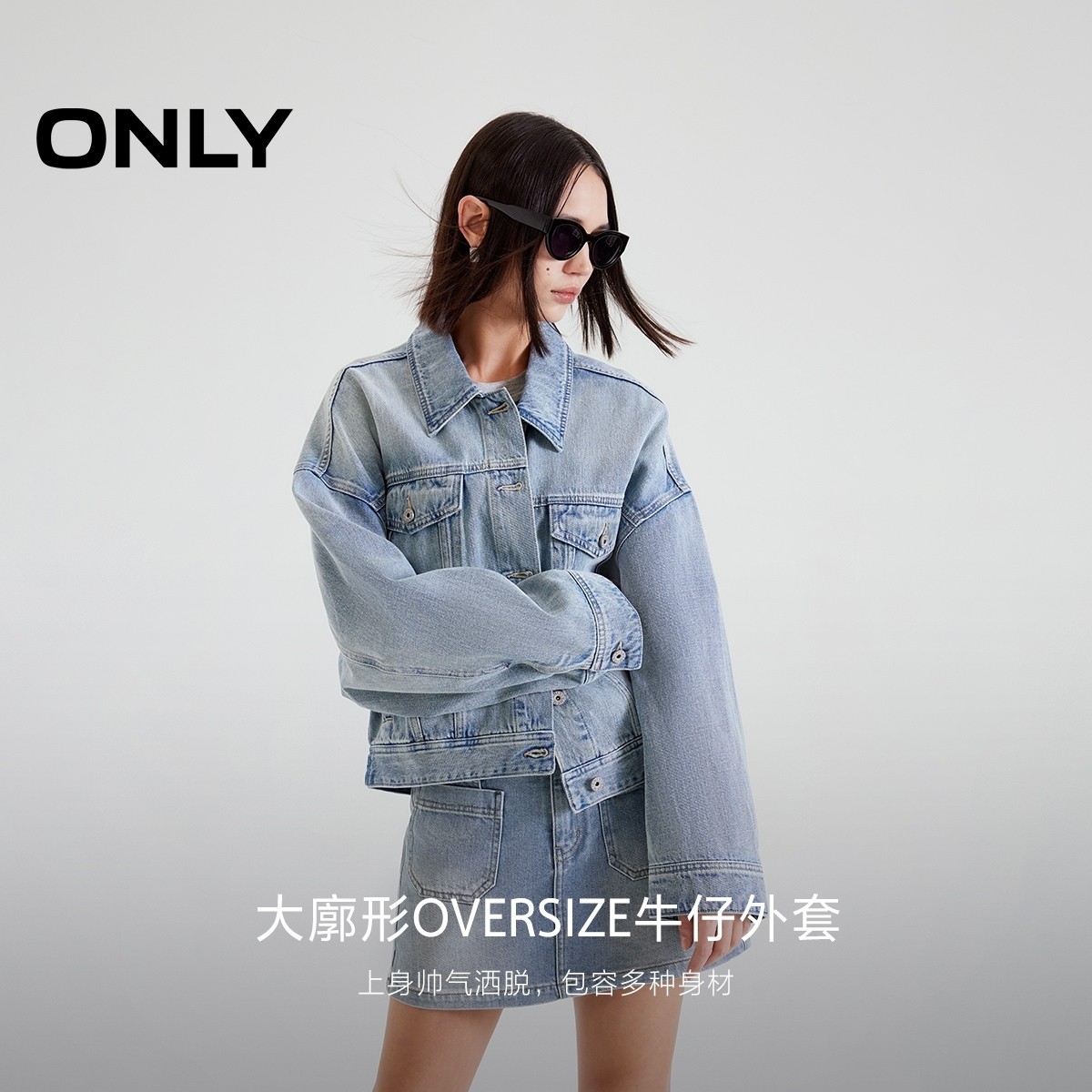ONLY2025秋季新款酷感水洗OVERSIZE翻领落肩长袖牛仔外套女