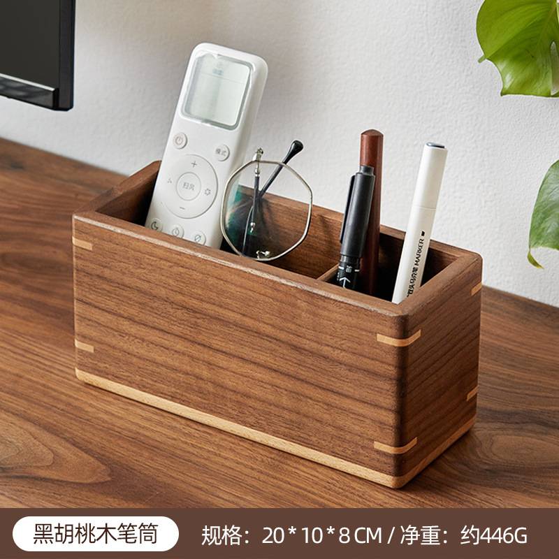 实木笔筒北美黑胡桃木轻奢复古办公室桌面摆件书房木质笔筒收纳盒
