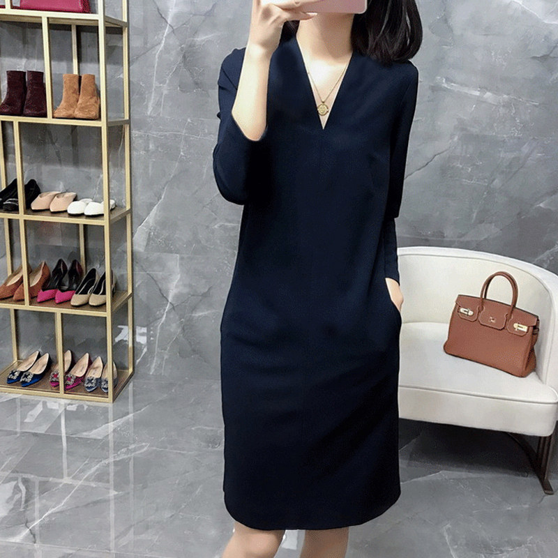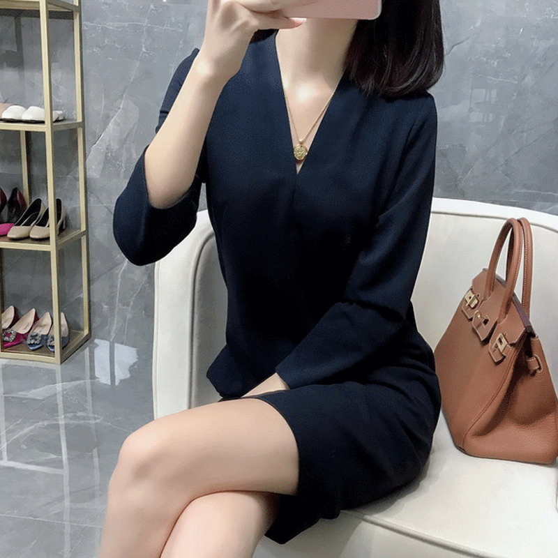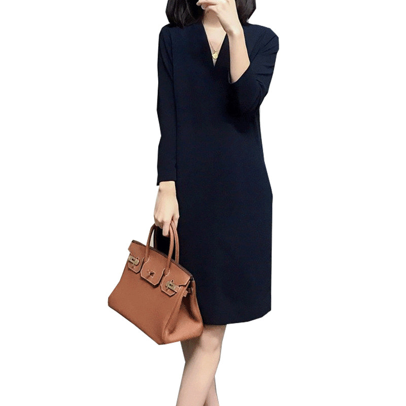 胖妹妹气质V领连衣裙显瘦OL裙子