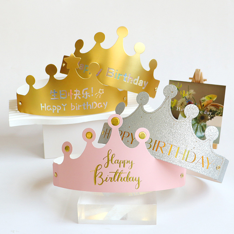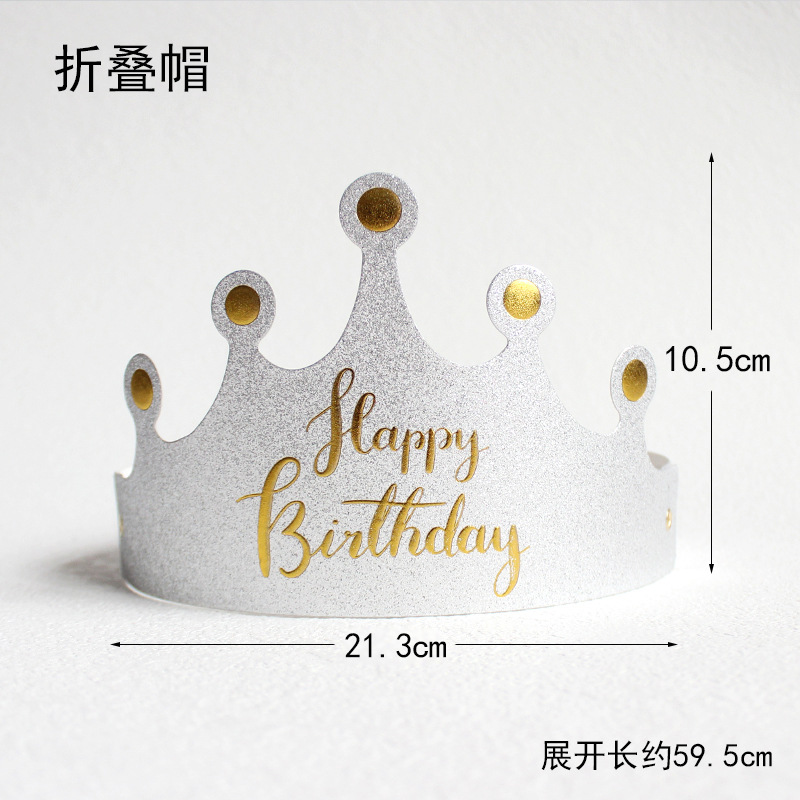 新款卡通皇冠折叠帽儿童生日帽成人帽派对花边发光毛球帽仙女王子