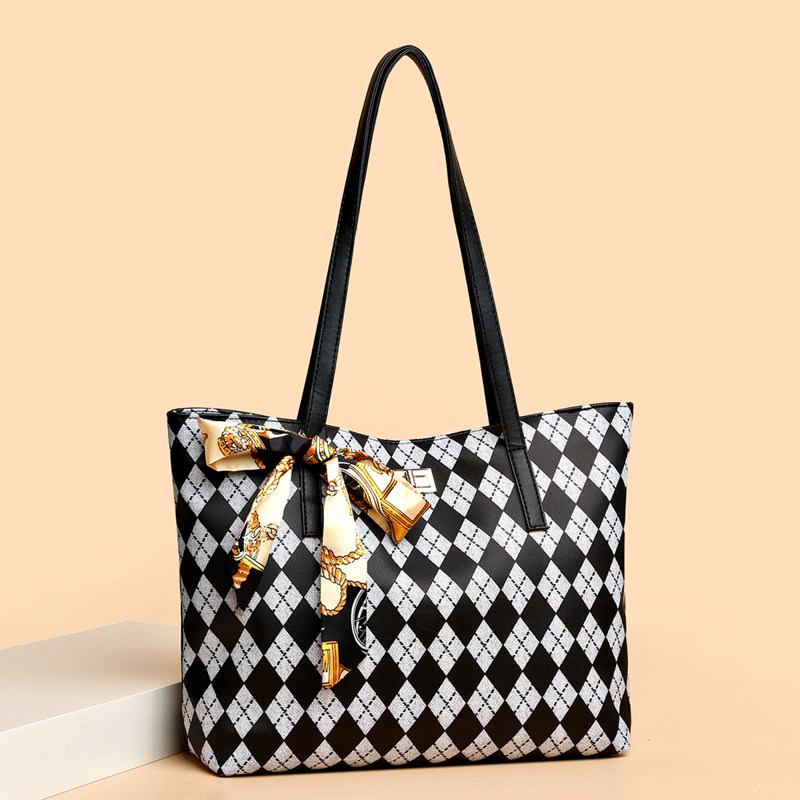 女包夏季新款菱格托特包女通勤大容量学生单肩包棋盘格女士手提包