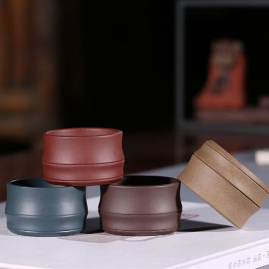宜兴紫砂品茗杯茶杯子手工竹节杯原矿绿泥紫红泥主人杯茶具小容量