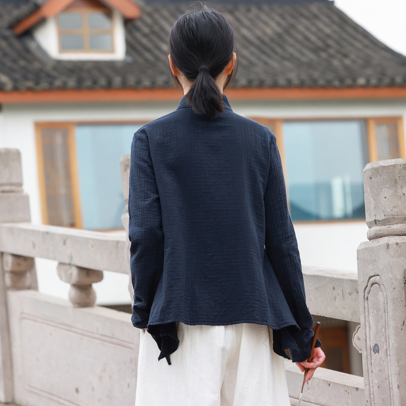 高端斜襟居士服女款黑色棉麻改良唐装上衣中国风佛系禅意女装禅服