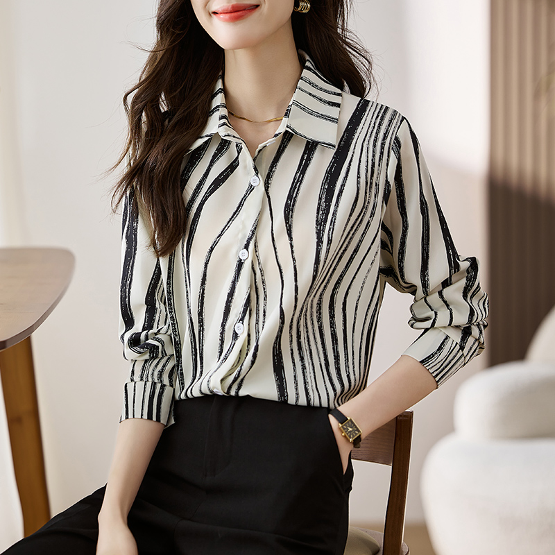 女装秋装矮个子150cm显高加小码翻领撞色雪纺衫开衫衬衫衬衣长袖