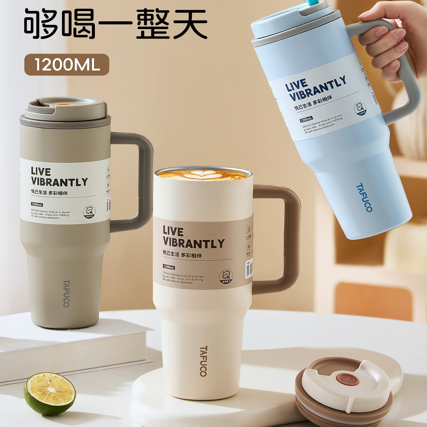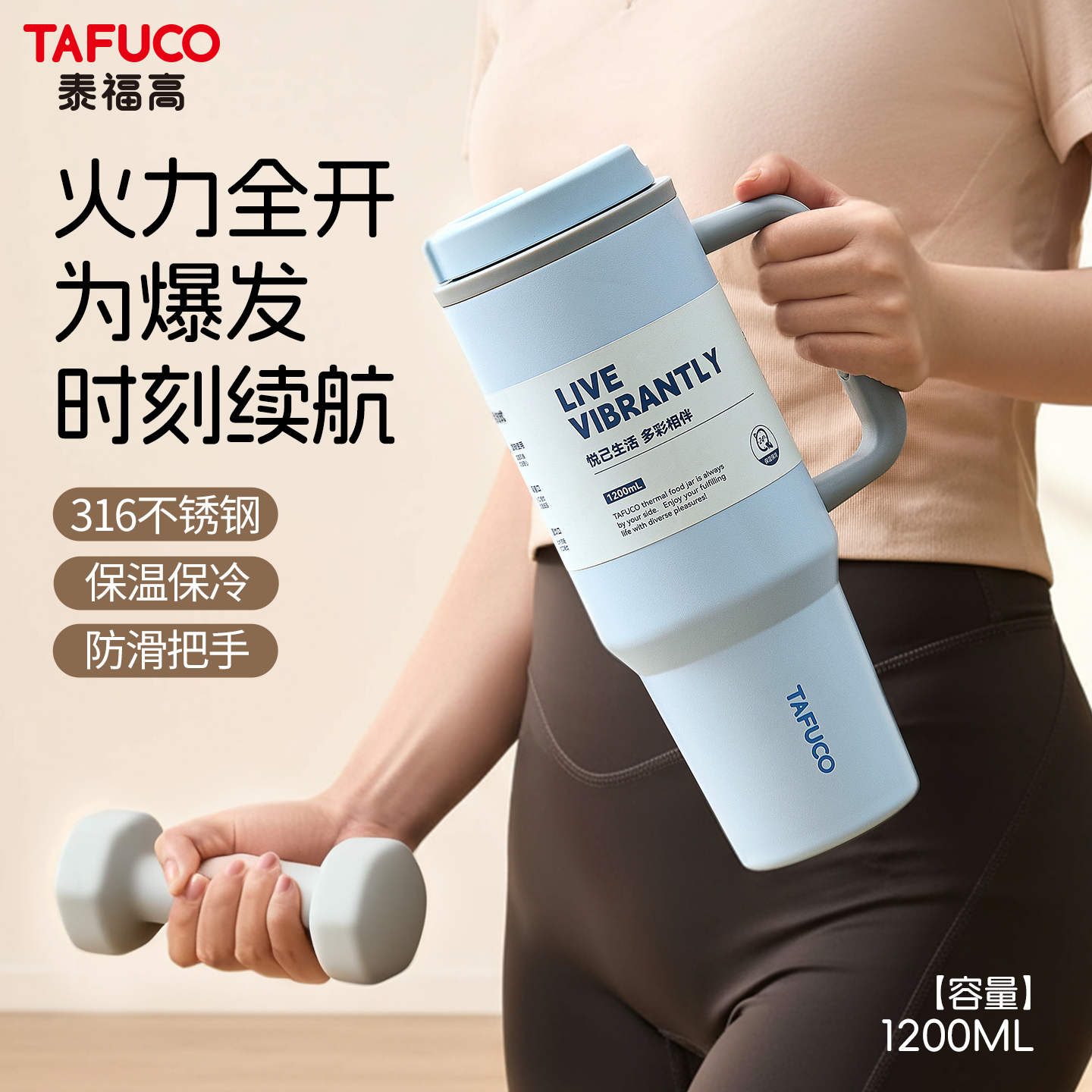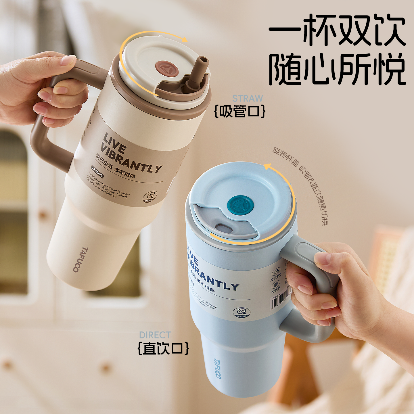 日本泰福高巨无霸吸管保温杯