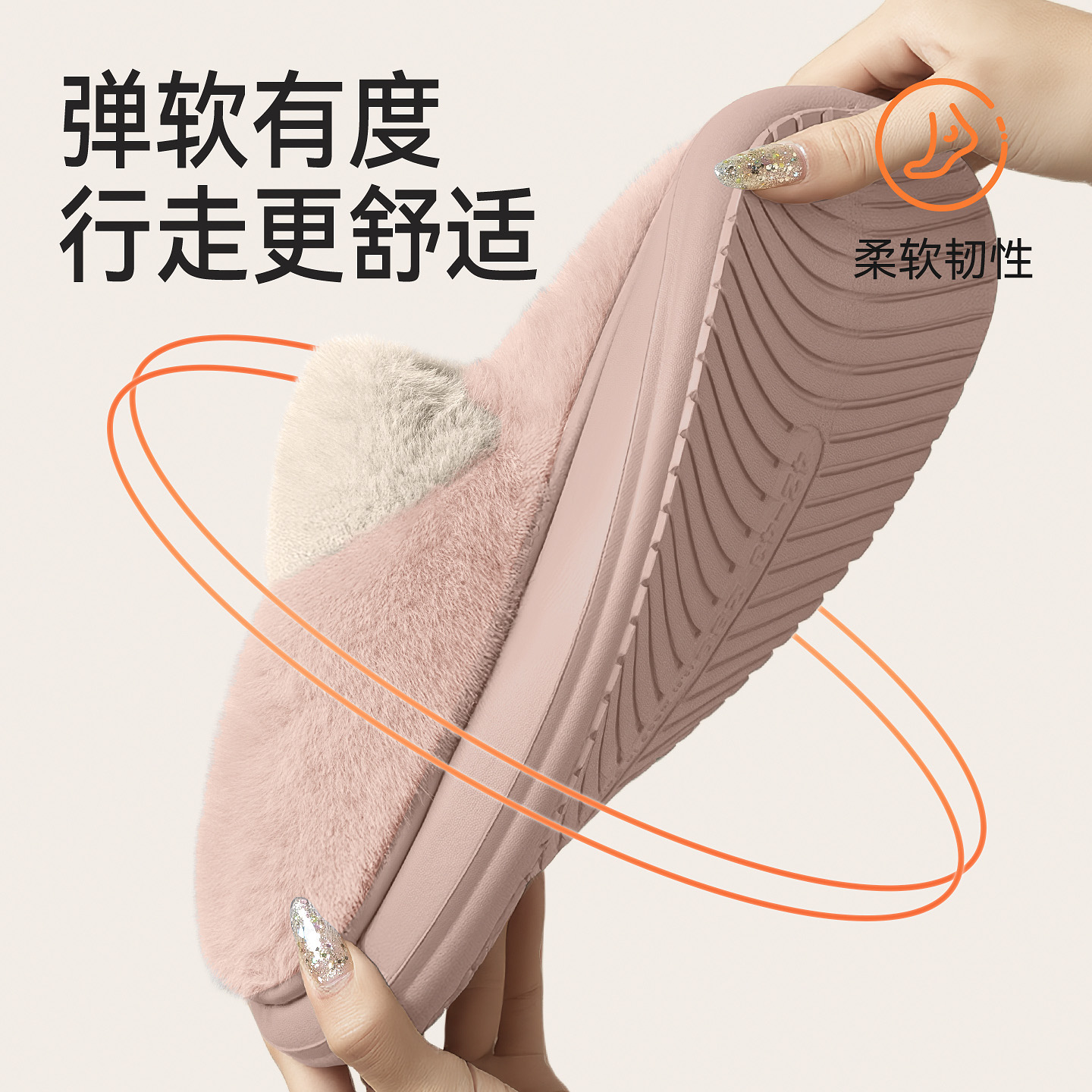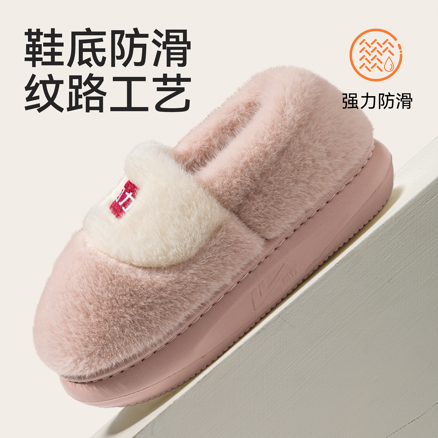 回力棉拖鞋女款2025冬季新款居家厚底防滑保暖包跟毛绒棉拖外穿