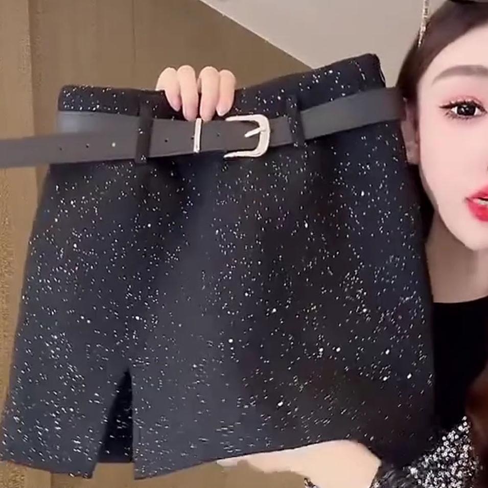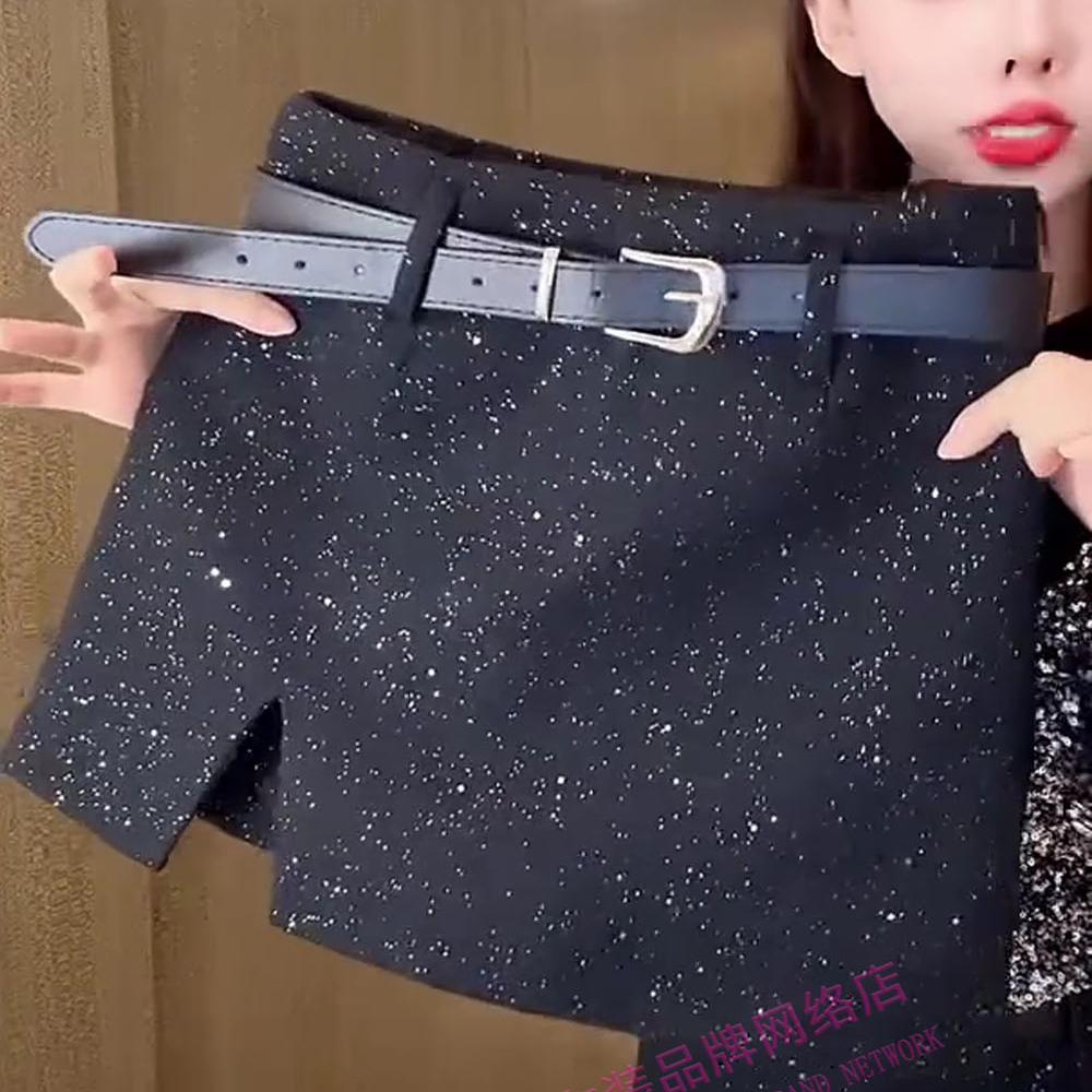 时尚亮闪闪裤裙女2024秋冬新款气质防走光A字开叉短裙一步半身裙