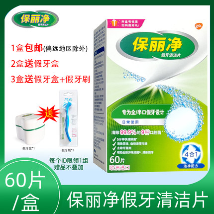 保丽净全半口假牙清洁片60片清洗泡腾片正畸保持器隐形牙套清洁剂