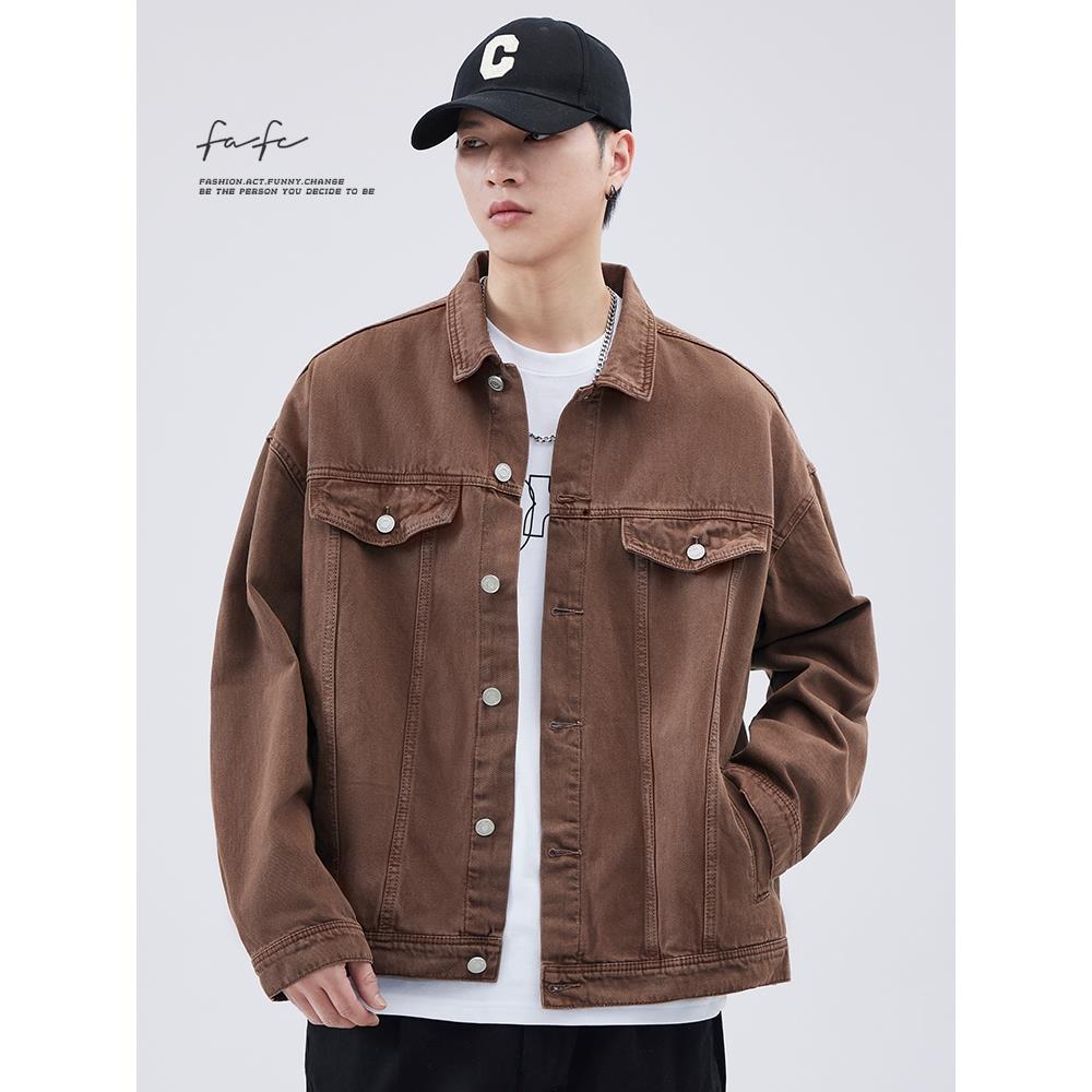 FAFC2024秋季纯棉牛仔衬衫男款美式纯色潮流休闲百搭夹克长袖外套