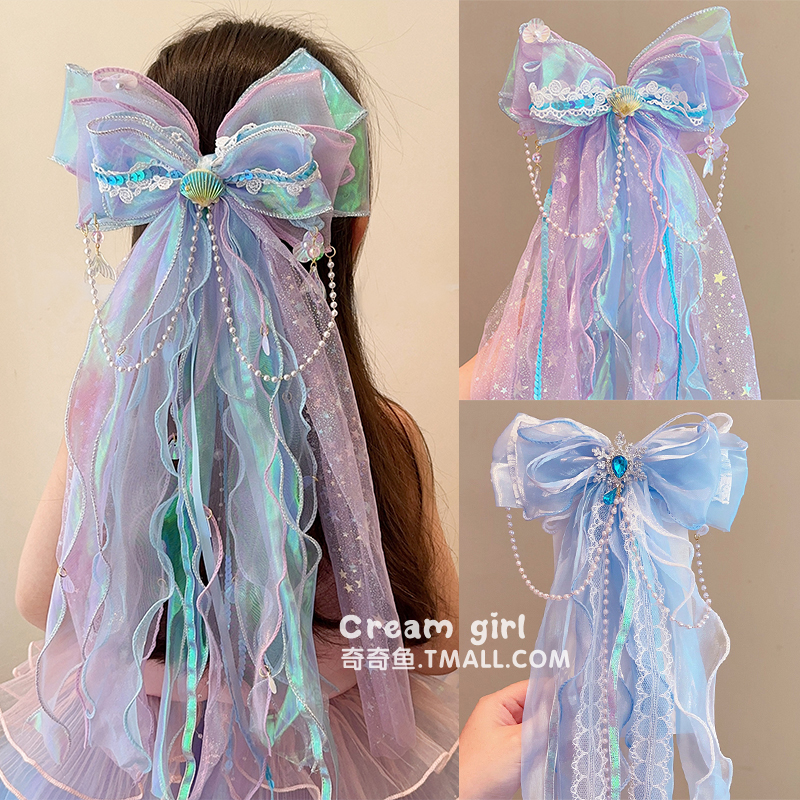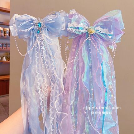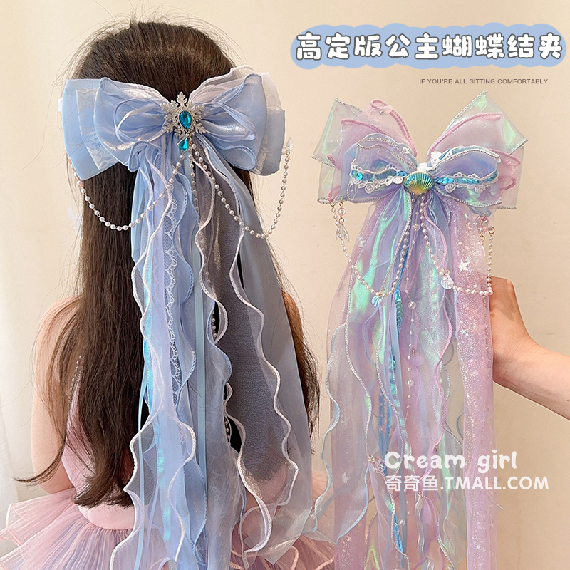 头纱儿童蝴蝶结超仙甜美女孩头饰生日礼物飘带发夹公主亮闪闪发卡
